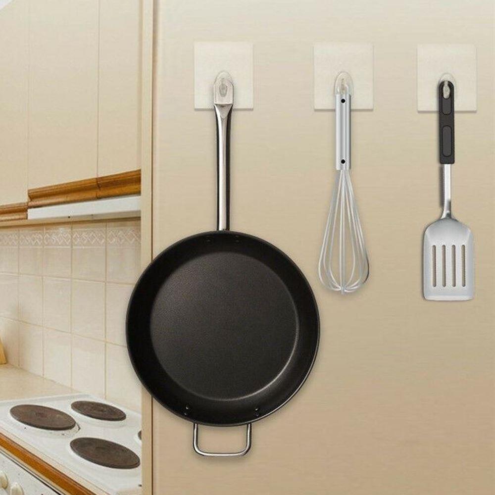 Podczas aplikacji powierzchnia musi być dobrze wyczyszczona. Na haczyku można zawiesić akcesoria łazienkowe – od gąbek, przez ręczniki, aż po przybory kuchenne, takie jak łyżki czy ściereczki. Można na nim powiesić także lekki szlafrok. Haczyki są wielofunkcyjne, dzięki czemu można wymyślić nieskończenie wiele zastosowań. W opakowaniu znajduje się 10 sztuk.
