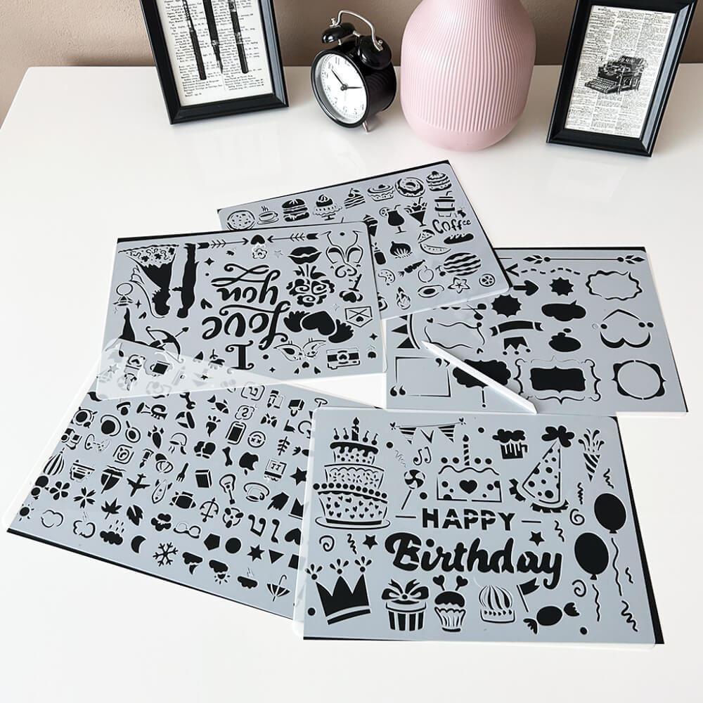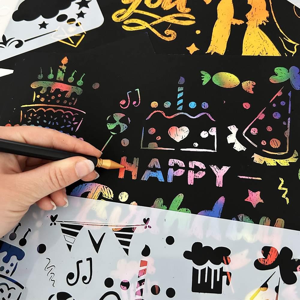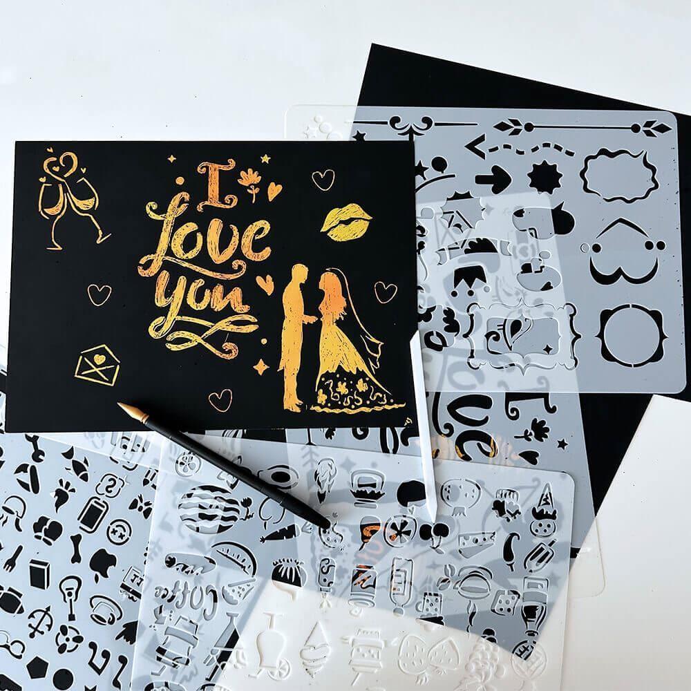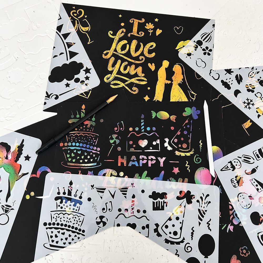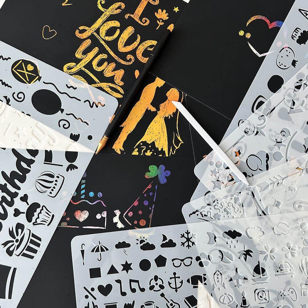 5 szt. szablonów do wyskrobywania A4 + 2 długopisy