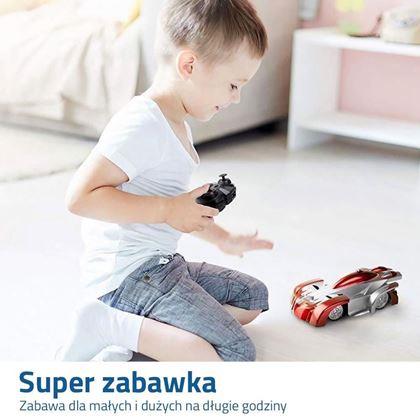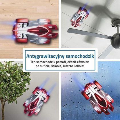 Ziemska grawitacja zostanie całkowicie pokonana dzięki wentylatorowi, który unosząc autko, pozwoli mu jeździć nawet po suficie. Niewskazane do użycia na dywanie. Ta jazda będzie naprawdę ekscytująca. Dla jeszcze większej atrakcyjności ma wbudowane diodowe oświetlenie i jest sterowane zdalnie.