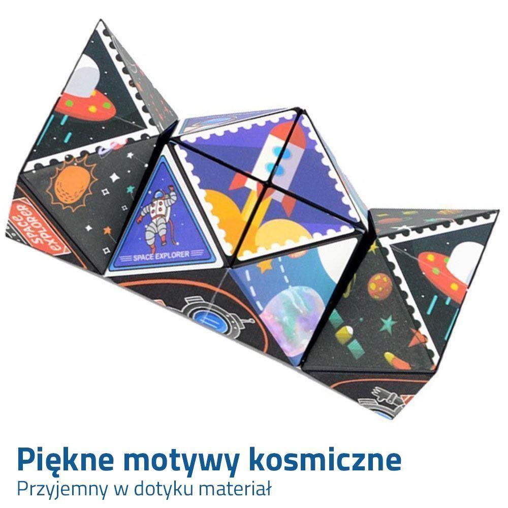 Antystresowa składana kostka będzie super prezentem dla wszystkich zestresowanych. Spróbuj pozbyć się stresu z pomocą tej kostki. Świetny pomocnik w nerwowych sytuacjach. Kostka oferuje nieskończoną ilość zabawy. Możesz ją składać w kółko. Składanie jest tym ciekawsze, że możliwe jest złożenie kostki jedną ręką. Na kostce znajdują się obrazki przedstawiające planety i wszechświat. Wykonana jest z przyjemnego materiału.