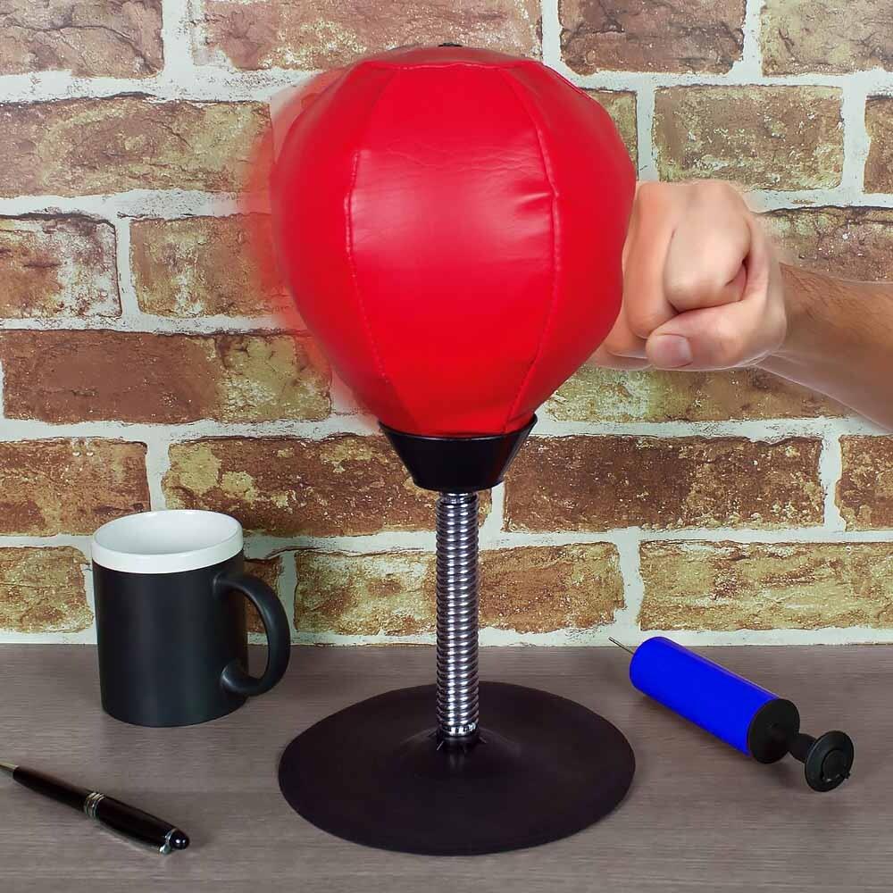 Wkurzyli cię współpracownicy w pracy? Nie możesz dokończyć zadania, które już dawno powinno być skończone, albo po prostu wszystko wali ci się na głowę i najchętniej coś byś rozwalił ze złości? Nie podejmuj pochopnych decyzji i lepiej przyłóż temu antystresowemu bokserskiemu piłeczkowi, który jest miniaturową wersją klasycznego worka bokserskiego! Przyniesie ci taką samą ulgę, a nie będziesz musiał chodzić na siłownię, bo bez problemu przymocujesz go do swojego biurka, więc za każdym razem, gdy będziesz w złym humorze, będzie pod ręką. Świetnie nadaje się także jako zabawny prezent dla marudnego kolegi lub tego, który wybił już pięścią dołek w blacie. Dobrze wiemy, że czasem sytuacje życiowe są źródłem negatywnych emocji, dlatego dobrze jest je z siebie wyrzucić w sposób, który nikomu ani niczemu nie zrobi krzywdy – więc lepiej poboksuj.