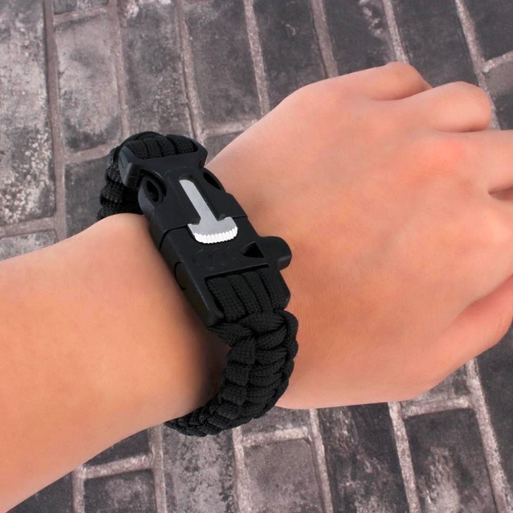 Kochasz naturę, wędrówki, biwakowanie lub wspinaczkę górską? Jeśli tak, ten bransoletka survivalowa będzie dla Ciebie idealna! Zakładasz ją na nadgarstek i nie musisz już niczego więcej martwić. W bransoletce znajdują się podstawowe narzędzia, takie jak lina, gwizdek, krzesiwo i stal do rozpalania ognia.
