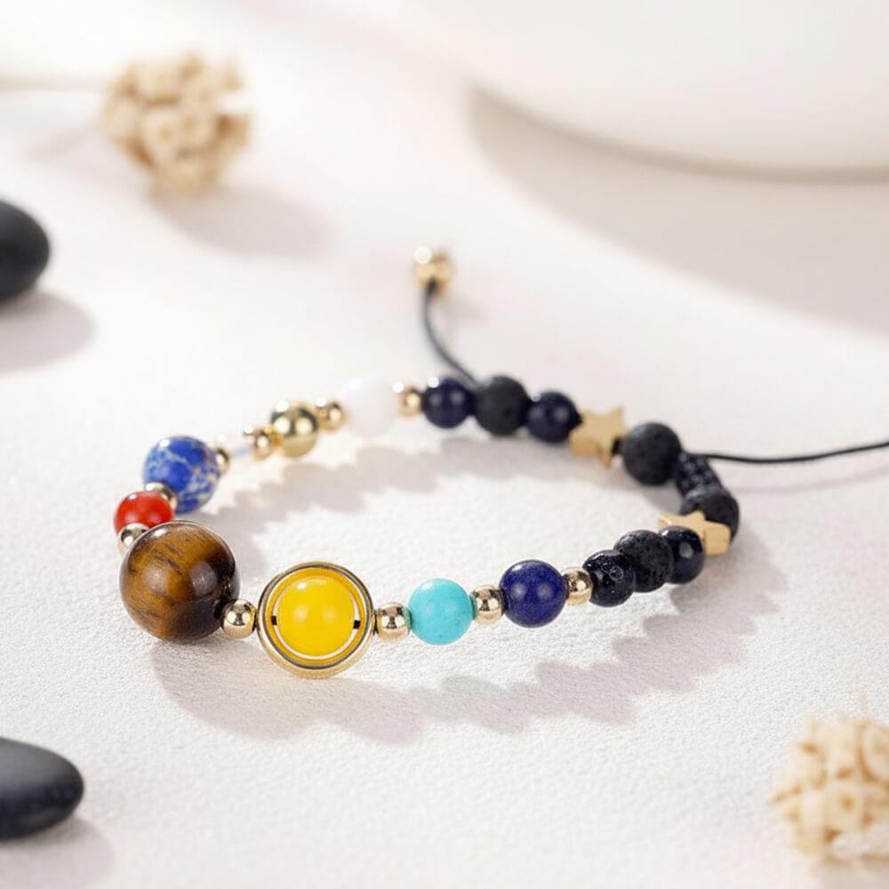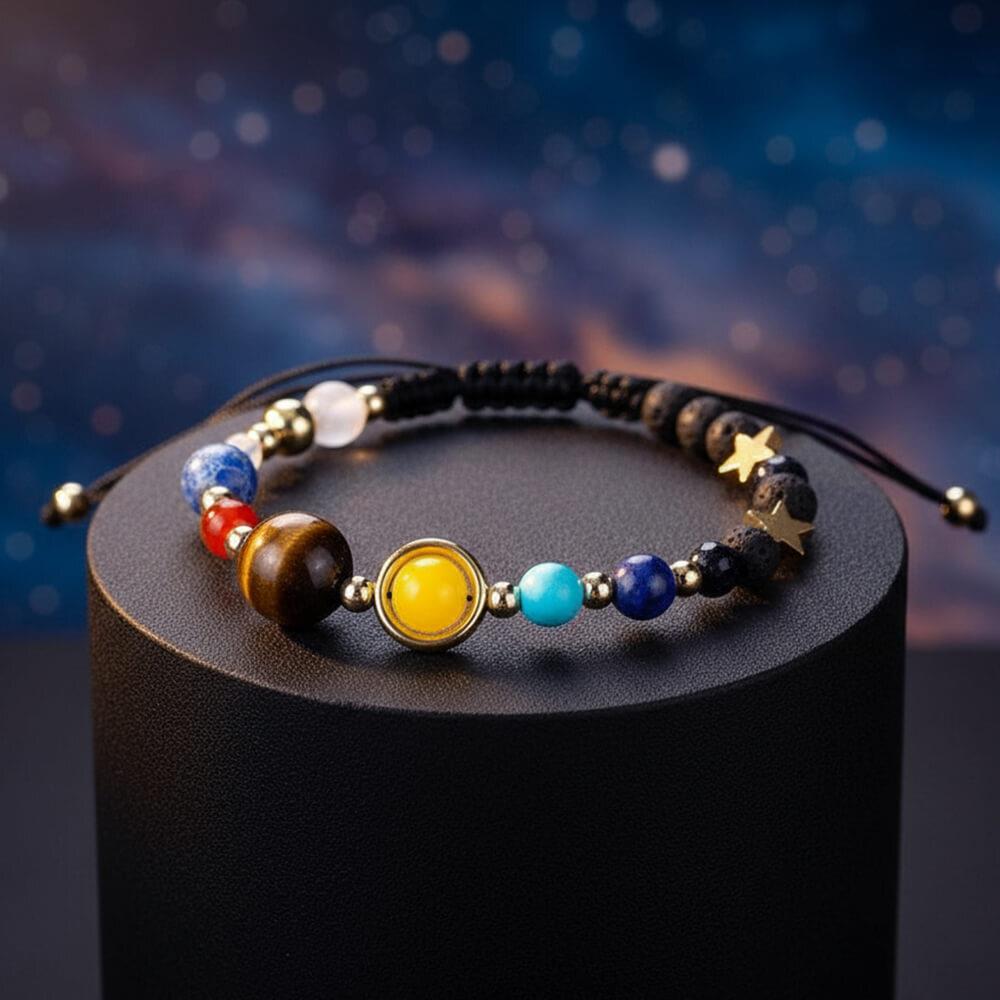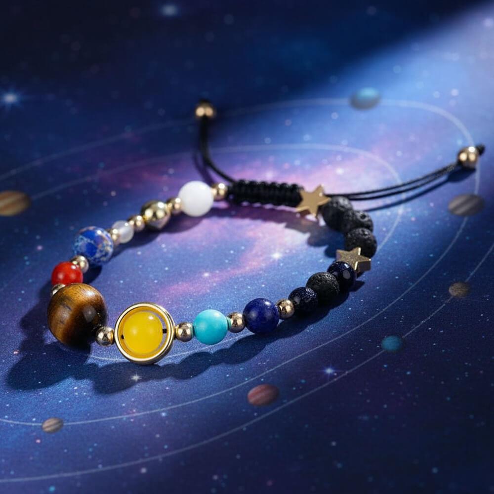 Bransoletka z układem słonecznym zachwyci wiele kobiet. Nie trzeba wcale być miłośnikiem kosmosu, aby docenić urok i elegancję bransoletki. Będzie pięknie się wyróżniać na Waszych dłoniach, a co więcej na pewno nie przejdziecie niezauważone. Projekt Układu Słonecznego nada dłoni szyku i elegancji Rozmiar jest uniwersalny, więc każdy może ją dopasować według swoich potrzeb.