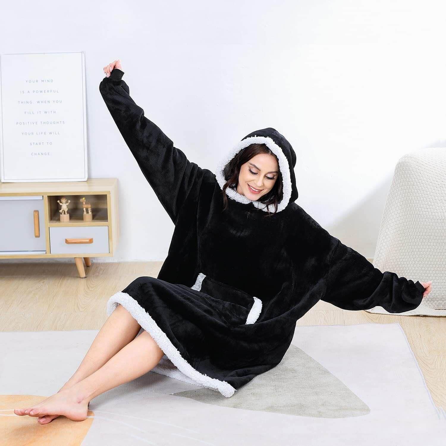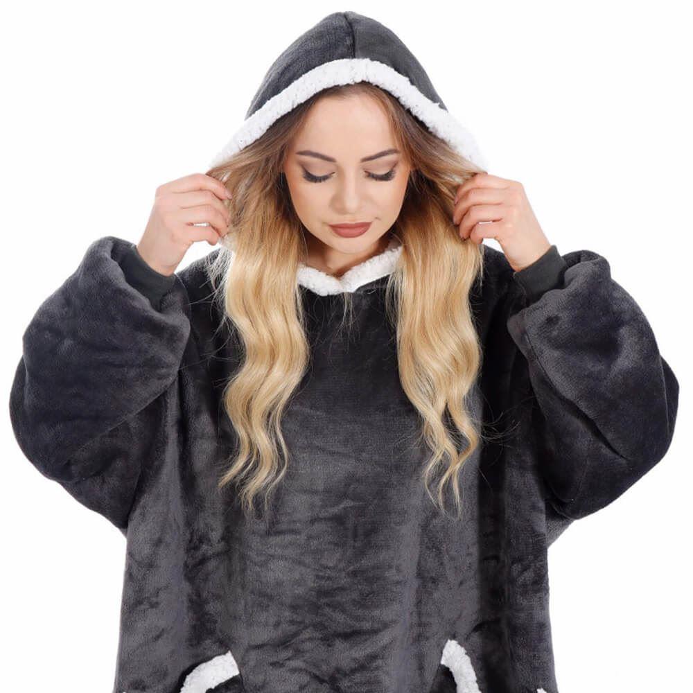 Ciepły koc z kapturem ogrzeje nawet największych zmarzluchów. O wiele lepszy niż klasyczny koc. Ten koc ma design bluzy. Jest wykonany z bardzo przyjemnego materiału, który jest miękki i ciepły. Zapewnia komfort, relaks i odpoczynek. Z tym kocem będziesz się również o wiele lepiej poruszać. Co więcej, możesz go używać nie tylko w domu, ale także na przykład w pracy w chłodniejsze dni.