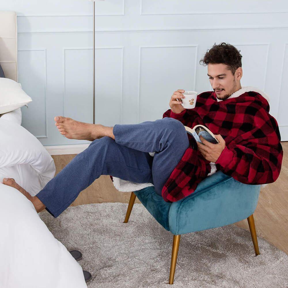 Ciepły koc z kapturem ogrzeje nawet największych zmarzluchów. O wiele lepszy niż klasyczny koc. Ten koc ma design bluzy. Jest wykonany z bardzo przyjemnego materiału, który jest miękki i ciepły. Zapewnia komfort, relaks i odpoczynek. Z tym kocem będziesz się również o wiele lepiej poruszać. Co więcej, możesz go używać nie tylko w domu, ale także na przykład w pracy w chłodniejsze dni.