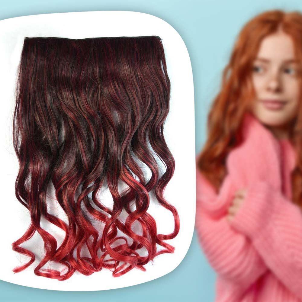 Clip in pasemko do kolorowego podkreślenia włosów - brązowo-czerwony