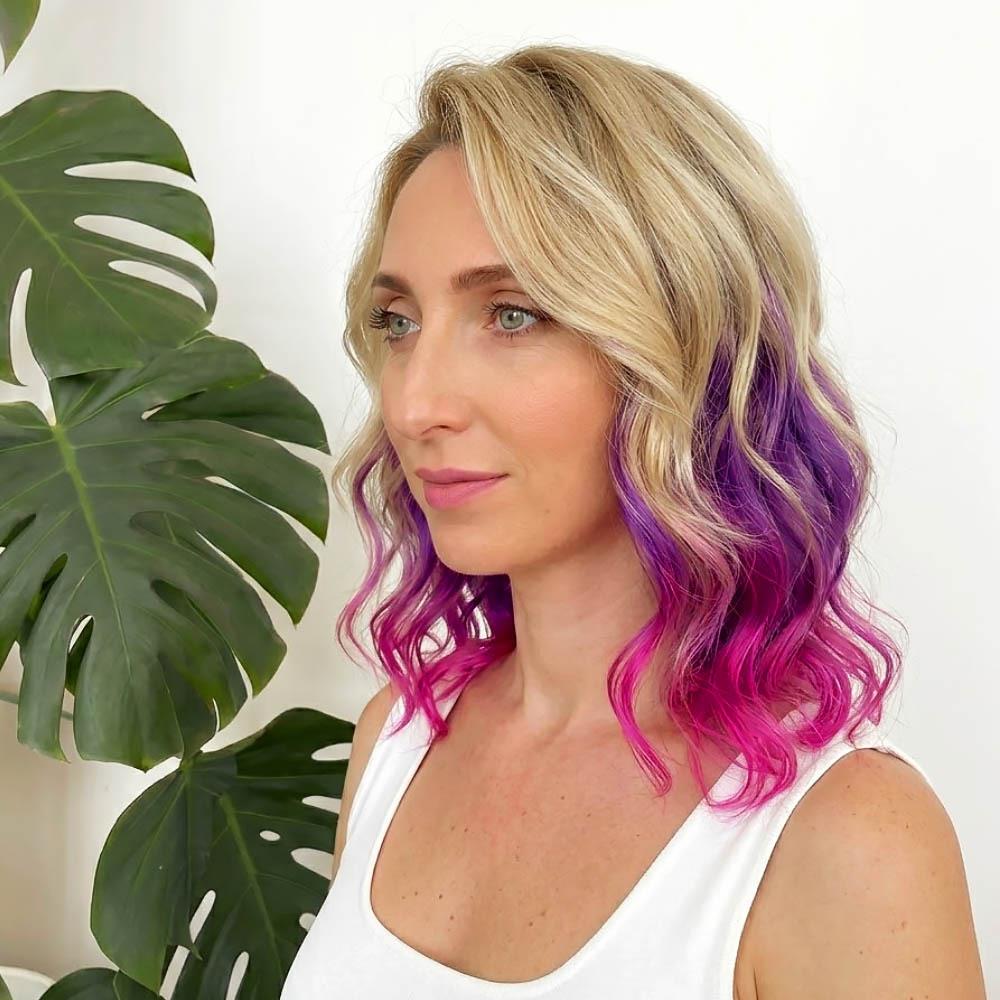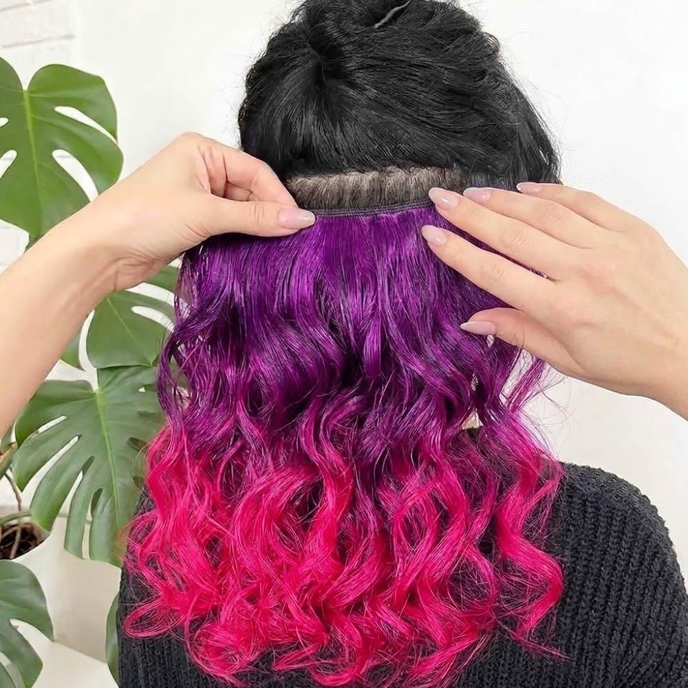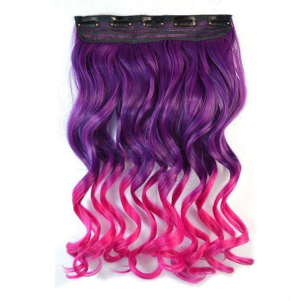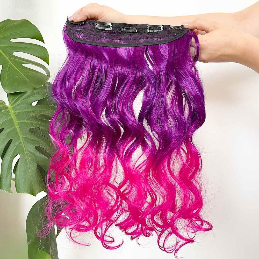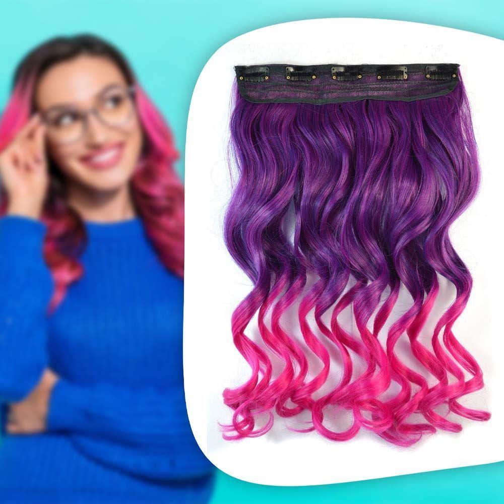 Clip in pasemko do kolorowego podkreślenia włosów - fioletowo-różowy