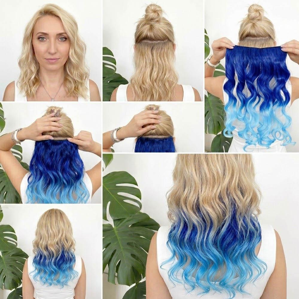 Clip in pasemko do kolorowego podkreślenia włosów - niebieski