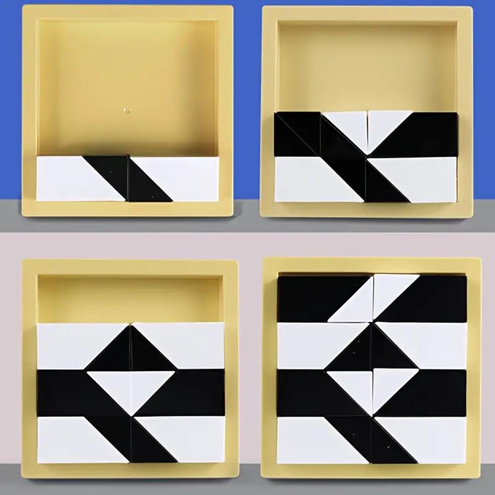 Czarno-biały tangram to świetna układanka dla wszystkich, którzy lubią myśleć i bawić się wzorami. Zestaw zawiera drewniane kształty oraz karty z szablonami o różnym stopniu trudności – od prostych po skomplikowane figury geometryczne. Zadaniem jest ułożyć poszczególne elementy tak, aby odpowiadały zadanemu obrazkowi.