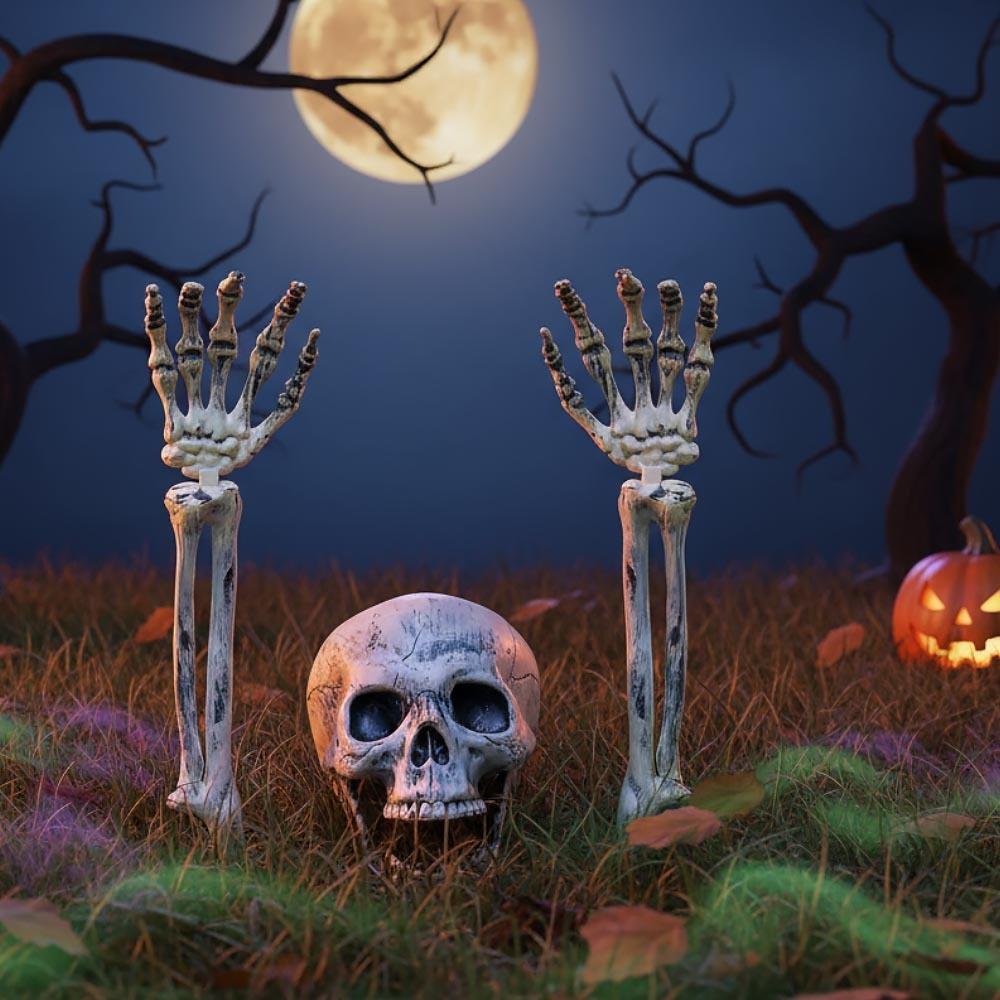 Wiatr świszcze po ścierniskach i już czujecie w powietrzu, że znów nadeszła ta straszna, ale równocześnie magicznie zabawna pora Halloween? Jeśli dodatkowo lubicie porządnie upiorne dekoracje, mamy coś idealnego dla was! Zastraszy i rozbawi, a kto to taki? Wychodzący z ziemi szkielet! Wydobył się z miejsca swego pochodzenia na światło dzienne, aby wszystkim ogłosić, że rozpoczęło się straszne święto. Wy jednak wiecie, że nie ma się czego bać, więc możecie szkielet dowolnie zaaranżować i przenieść w miejsce, gdzie zrobi największe przerażające wrażenie. Umieśćcie go przykładowo przy ścieżce prowadzącej do waszego domu, gdzie powita halloweenowych kolędników, ale również wystraszy niczego nieświadomych gości. Możecie mu też różnie wygiąć kościste ręce albo zmienić uśmiech ruchem w stawach. Możecie również dodać mu kilka stylowych dodatków, na przykład kapelusz, i coś do jego rąk, aby każdy widział, że ten szkielet jest wasz.