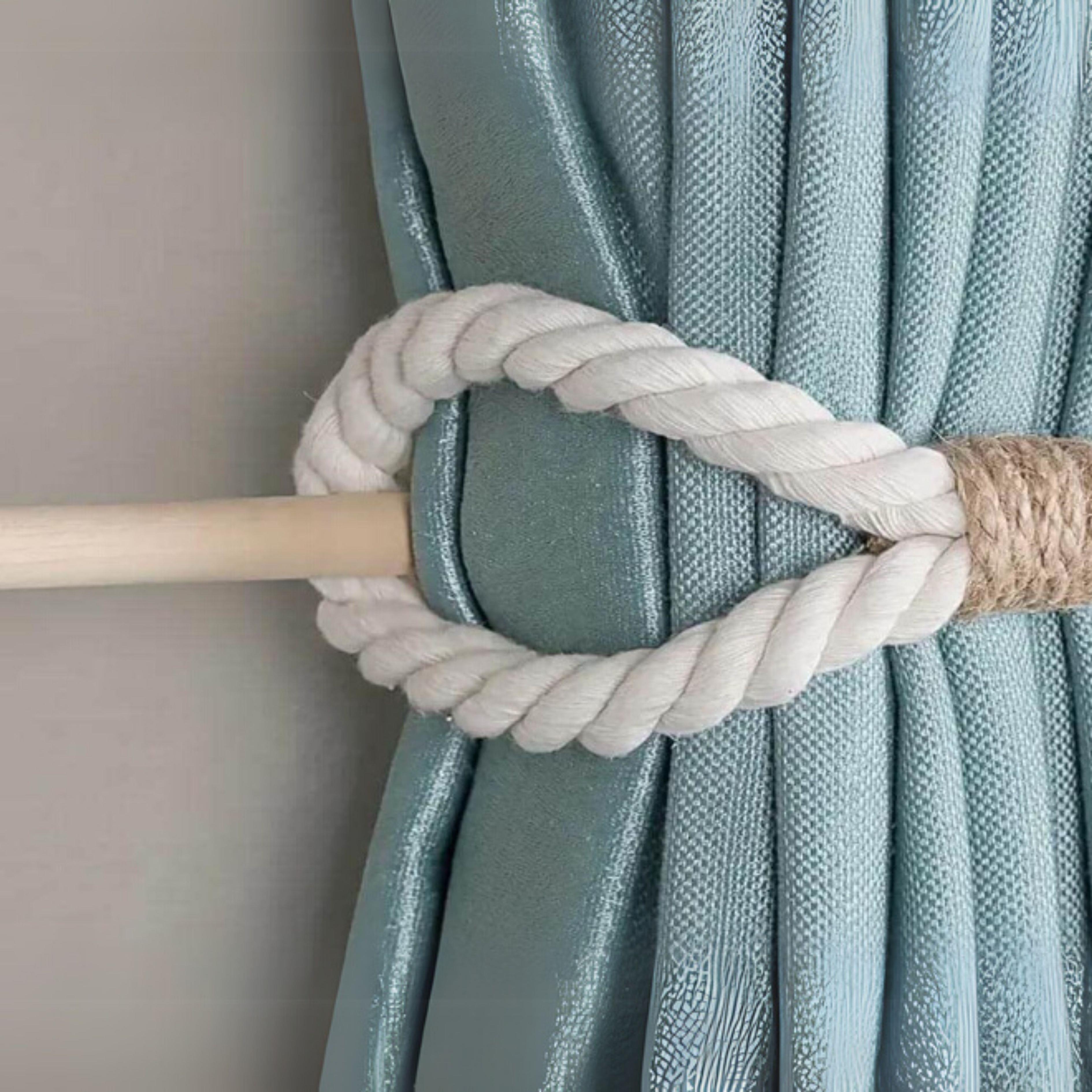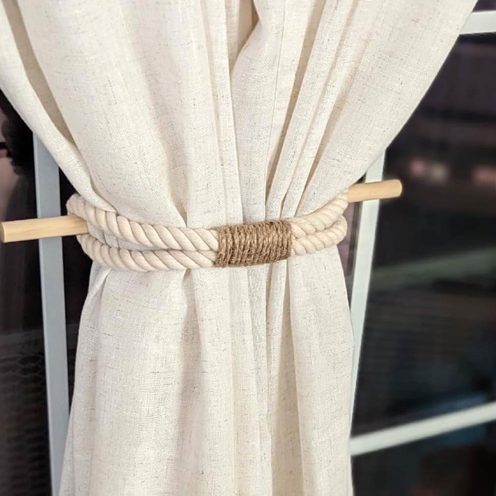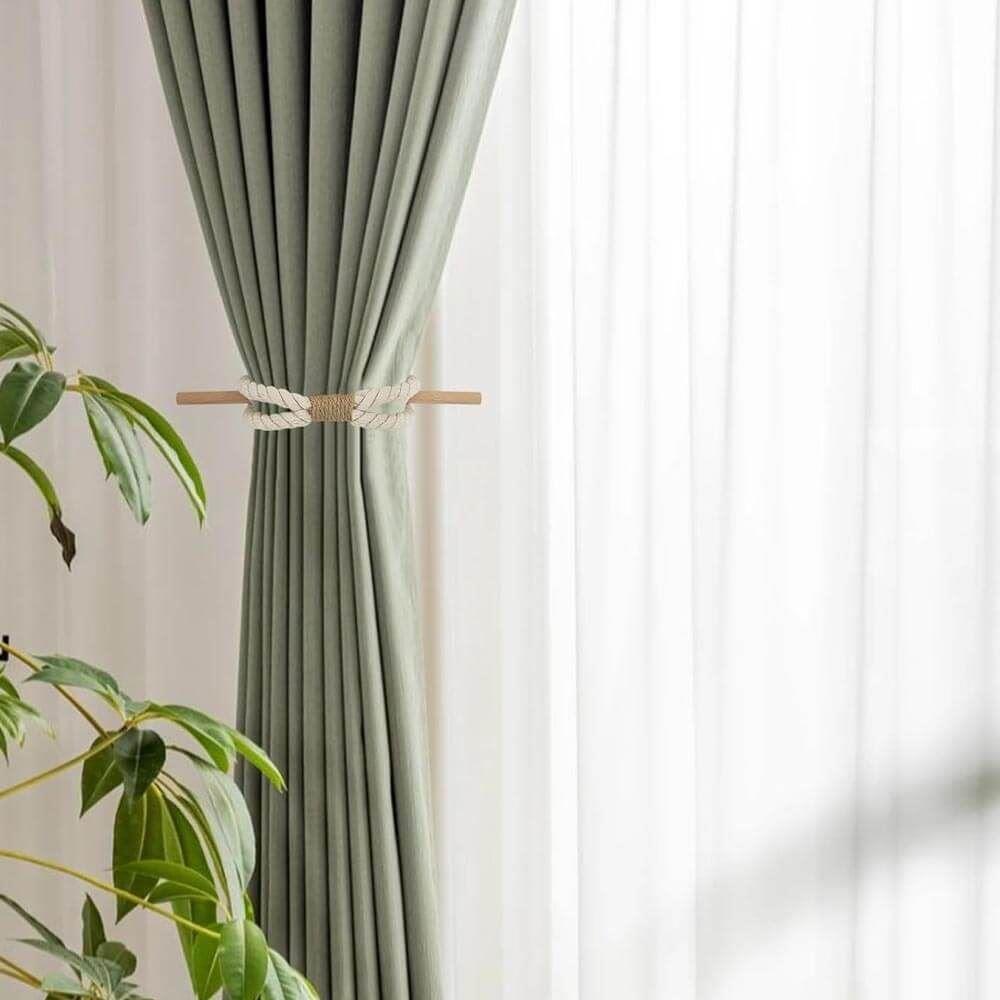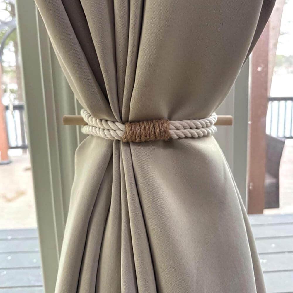 Ta klamra nie tylko praktycznie utrzyma zasłony na miejscu, ale jednocześnie posłuży jako wyrazisty element projektowy, który nada Twojemu wnętrzu zupełnie nowy wygląd. Instalacja jest bardzo prosta – wystarczy owinąć sznurek wokół zasłony i zabezpieczyć go drewnianym patyczkiem.