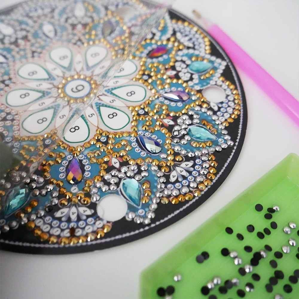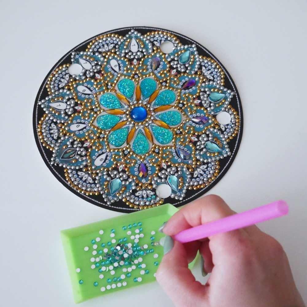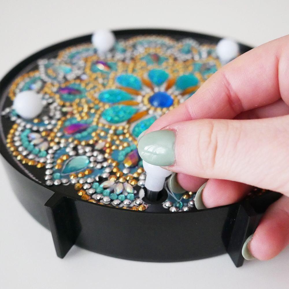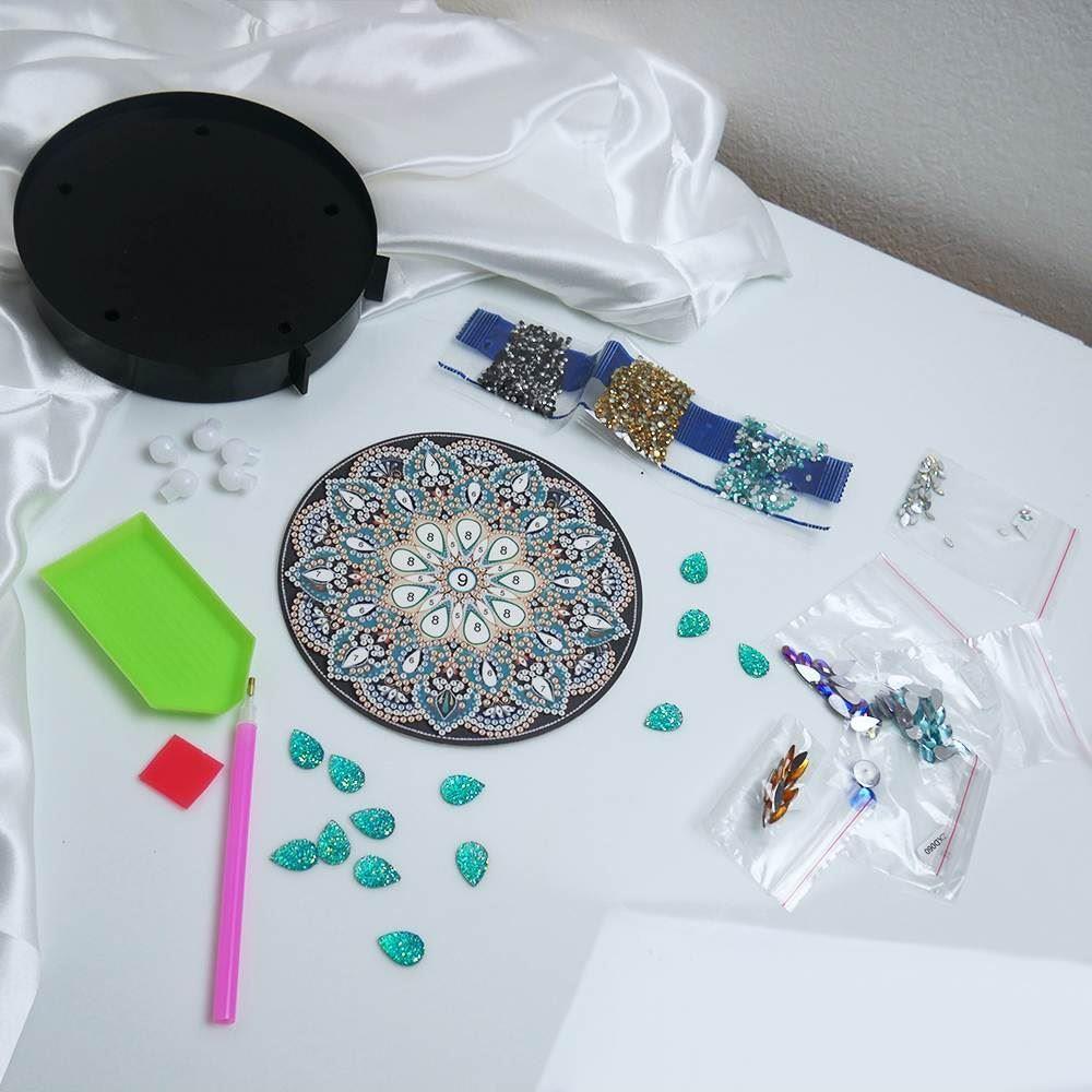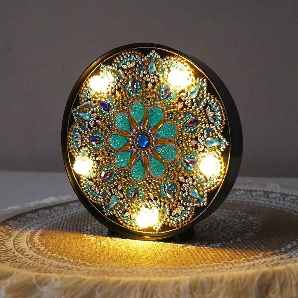Obrazek z Diamentowe malowanie - lampa LED mandala - niebiesko - srebrna