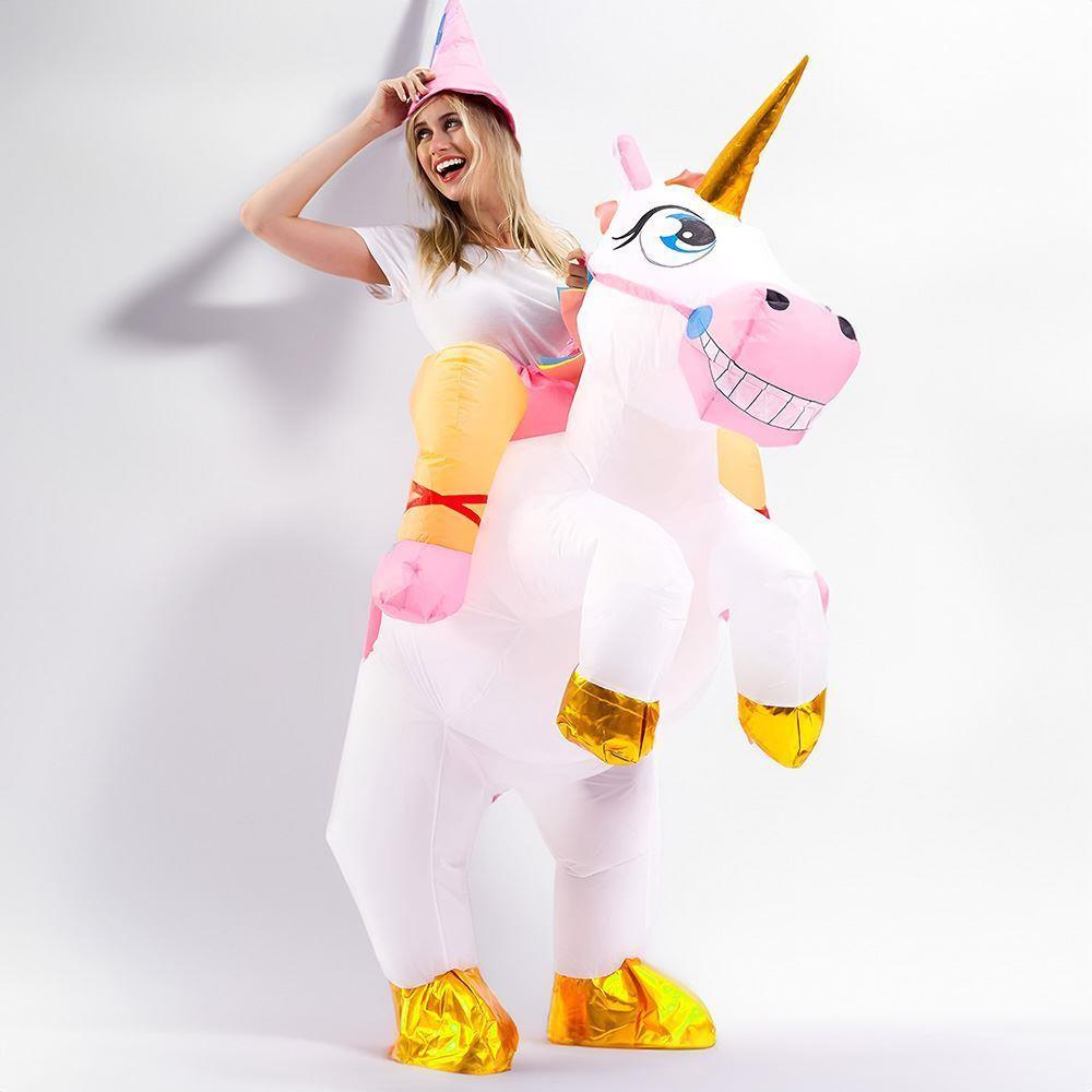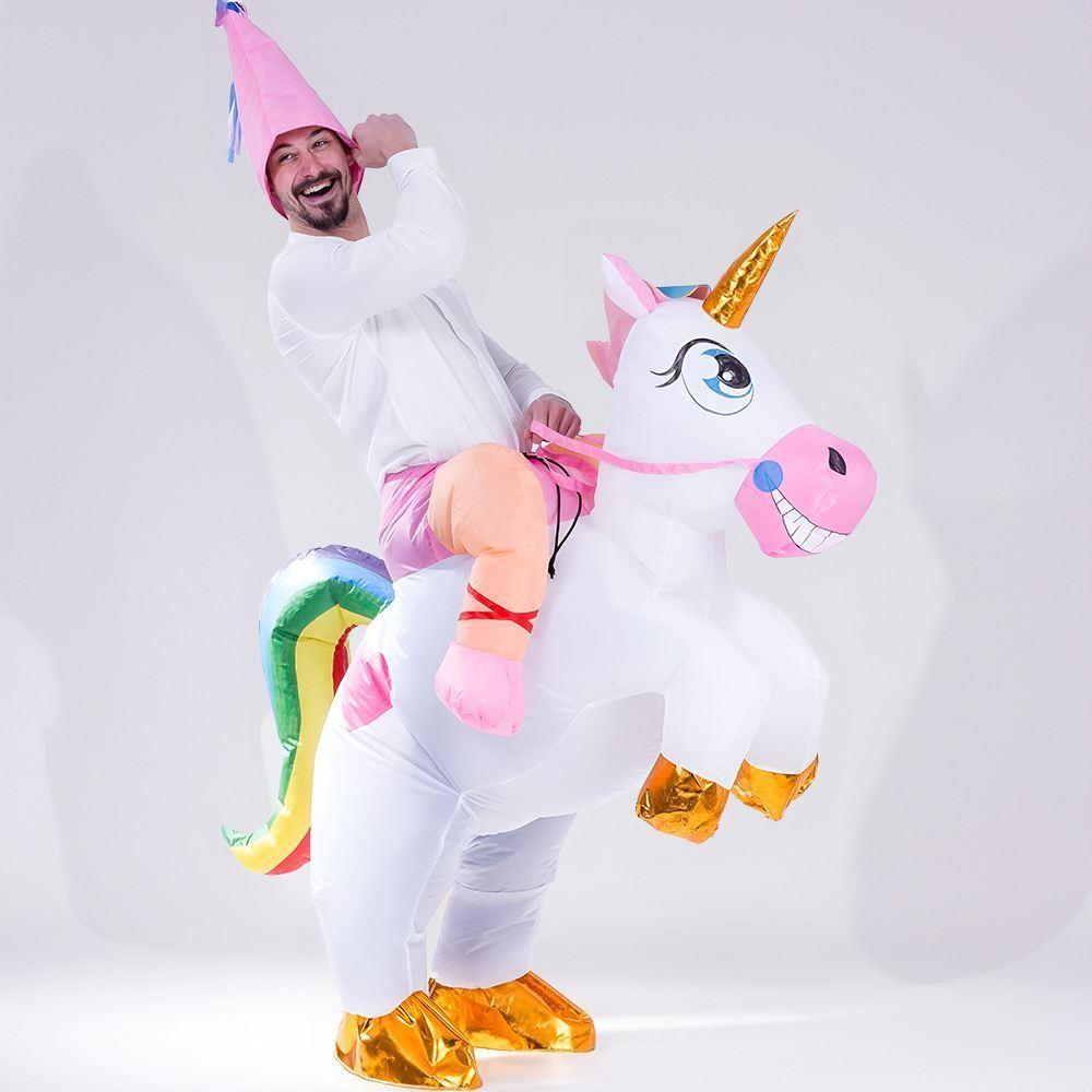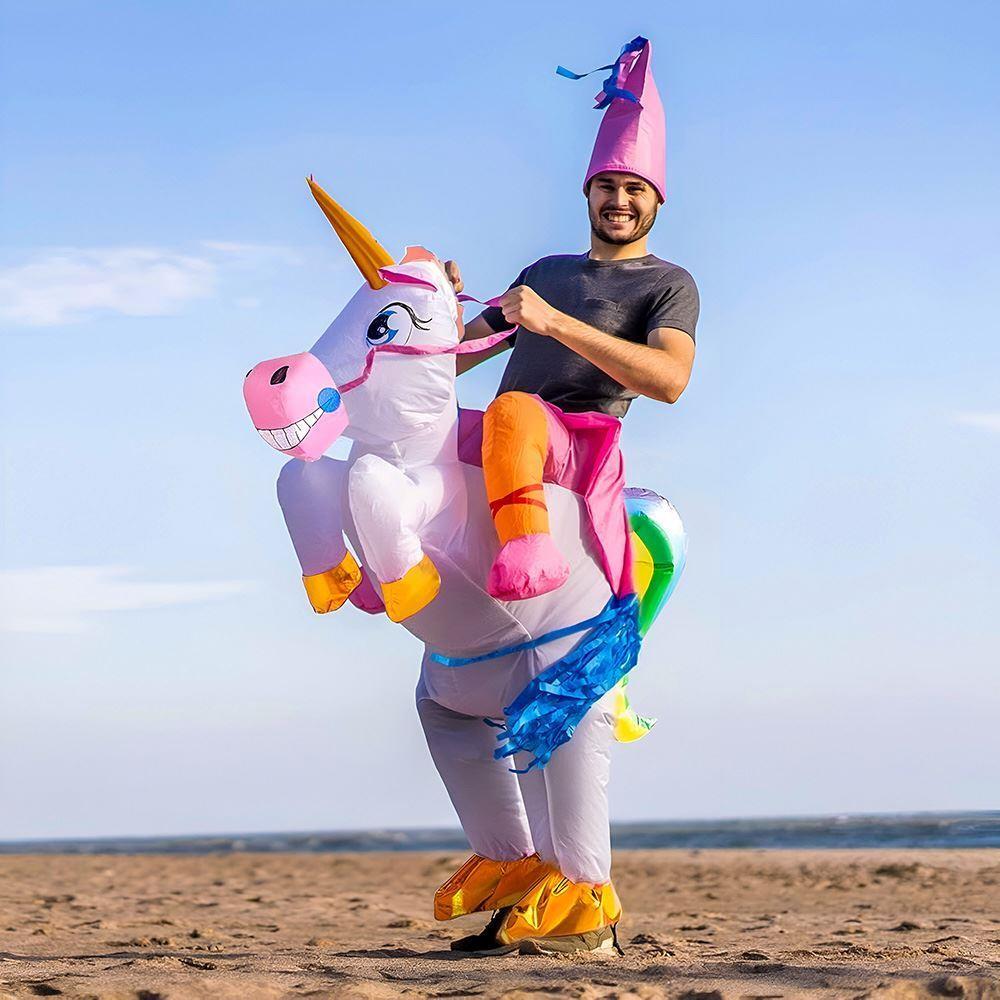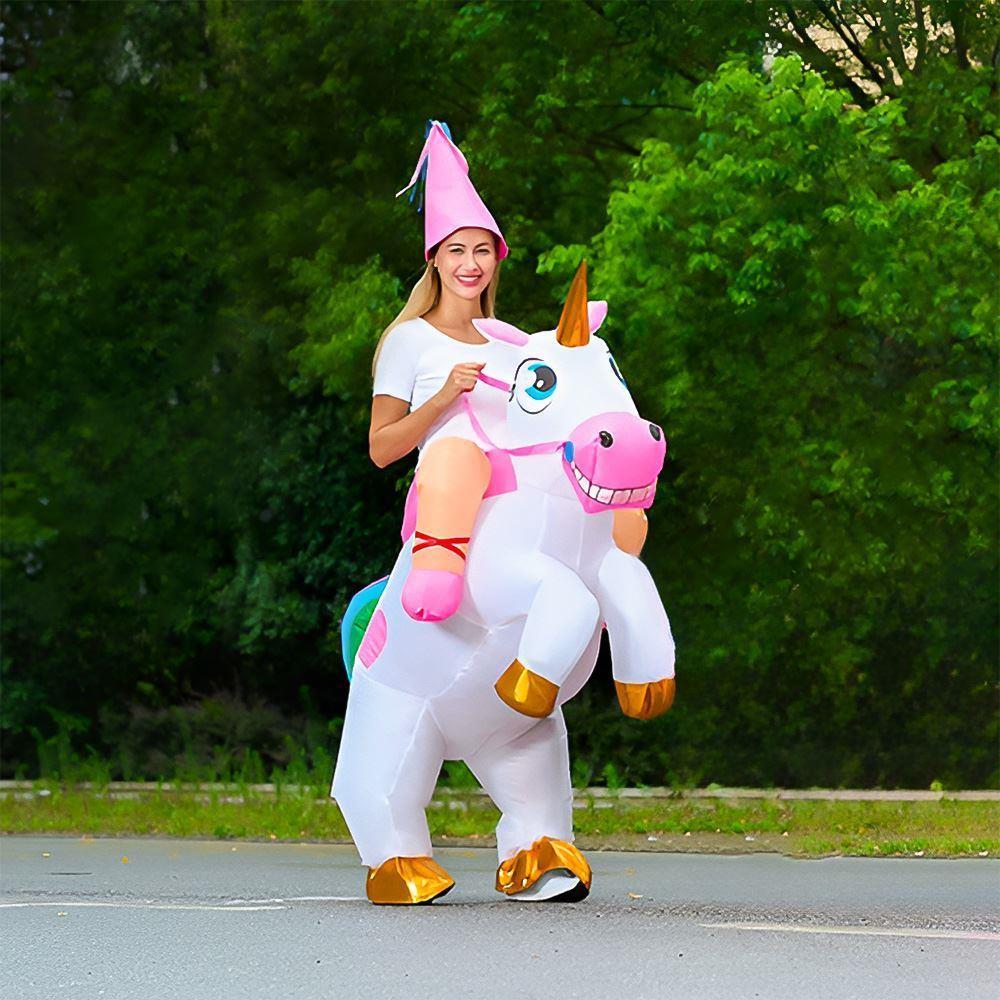 Ciesz się bajkową zabawą z naszym dmuchanym kostiumem jednorożca. Idealny na karnawały, imprezy tematyczne lub po prostu dla radości podczas rodzinnych uroczystości. Kostium jest samonadmuchiwany dzięki praktycznemu wentylatorkowi. Wygodne noszenie zapewnia elastyczny pas oraz przestronny otwór do ubierania. W zestawie znajduje się również spiczasta czapka, dzięki której staniesz się nieodpartym centrum uwagi!