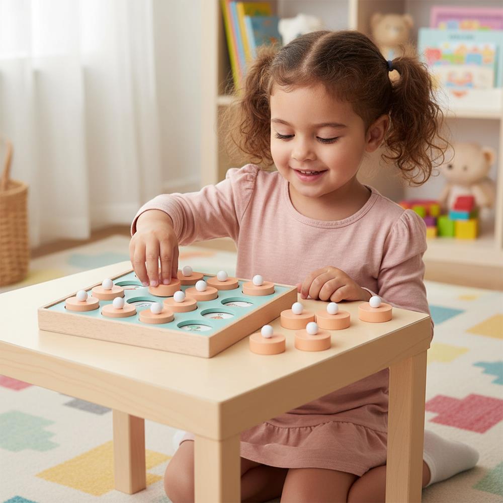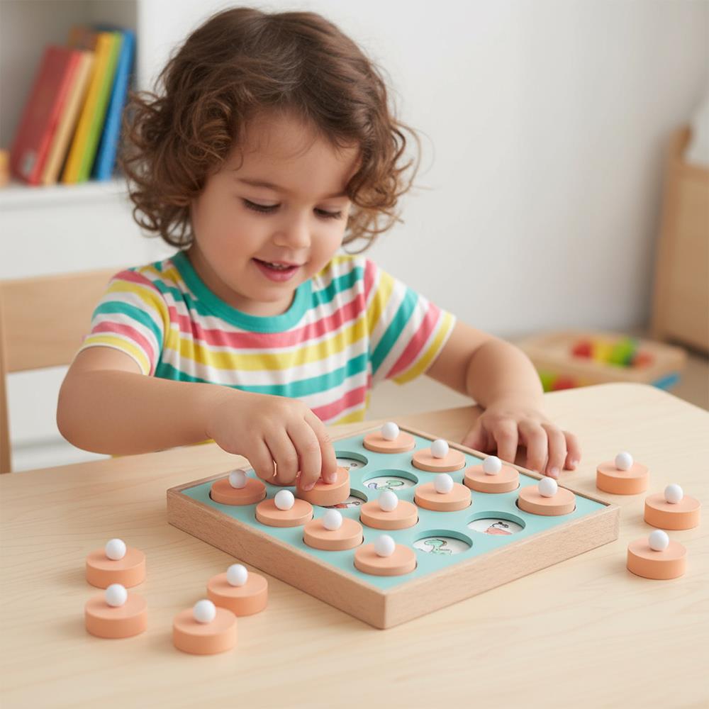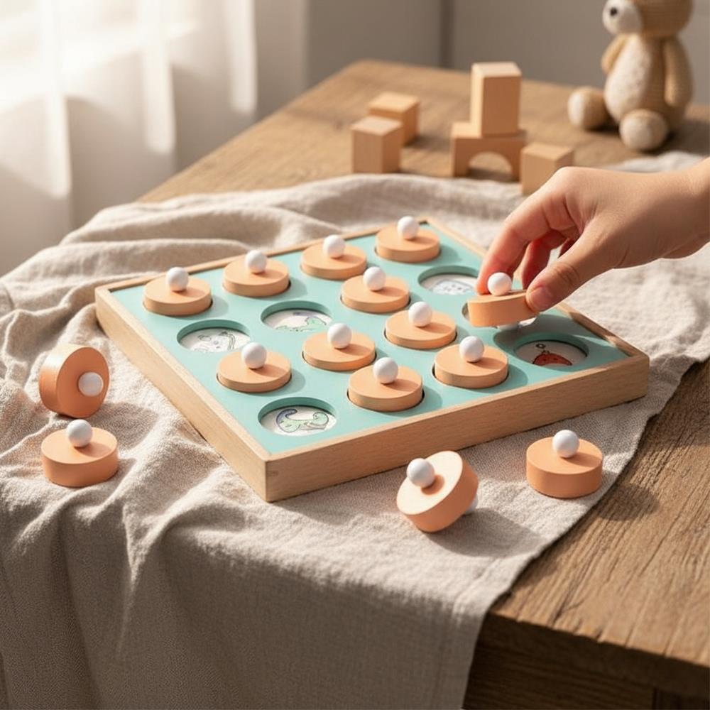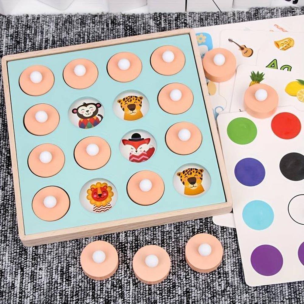 Drewniana gra pamięciowa dla dzieci z wymiennymi obrazkami