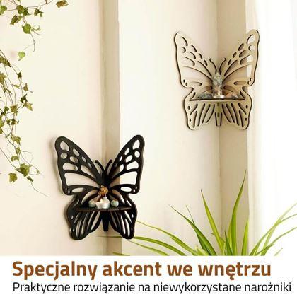 Szukasz oryginalnego mebla, który doskonale pasuje do rogu każdego pomieszczenia i pozwoli wykorzystać przestrzeń, która w innym wypadku pozostałaby niewykorzystana? Ta stylowa półka o motywie motyla od razu przyciąga uwagę swoim wyjątkowym wyglądem.