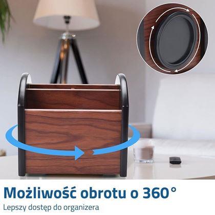Drewniany organizer na piloty jest wielofunkcyjnym miejscem do przechowywania. Pomoże ci zorganizować piloty i inną elektronikę, która leży swobodnie na stoliku kawowym. Uporządkowane piloty i telefony komórkowe sprawią, że stolik kawowy będzie wyglądał znacznie lepiej. Organizer obraca się o 360°, dzięki czemu masz łatwy dostęp do pilotów ze wszystkich stron.