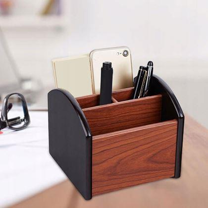 Drugą opcją wykorzystania organizera jest jako stojak na przybory do pisania. Idealnie pasuje do biurka w biurze, dzięki swojemu drewnianemu i eleganckiemu designowi. Czarnobrązowe wykonanie ładnie wtapia się w meble biurowe. Drewniany obrotowy organizer oferuje przestrzeń do przechowywania w postaci 4 przegródek. Na pewno znajdzie swoje zastosowanie w salonie lub w biurze!