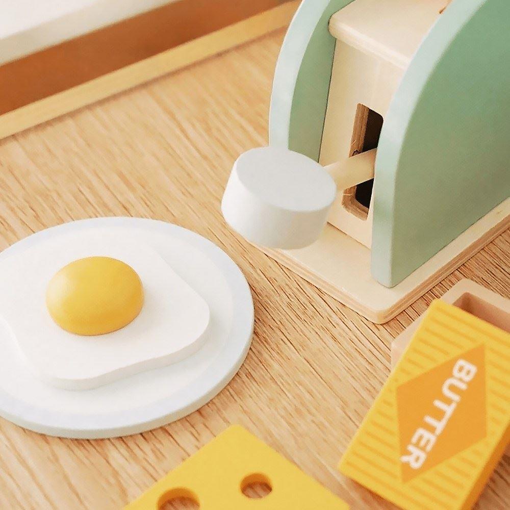 Drewniany zestaw śniadaniowy do zabawy, 9 szt.