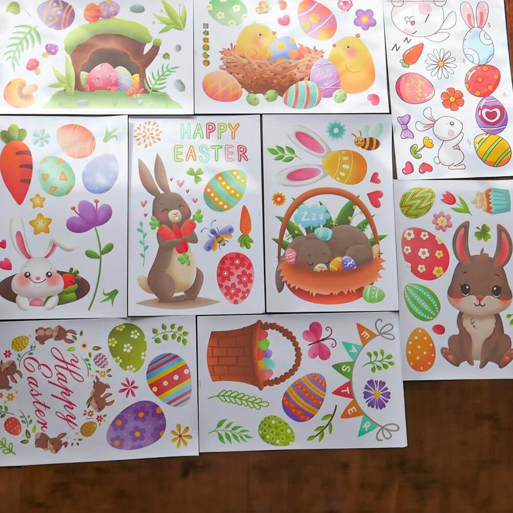 Duży zestaw wielkanocnych naklejek na okno 9 arkuszy