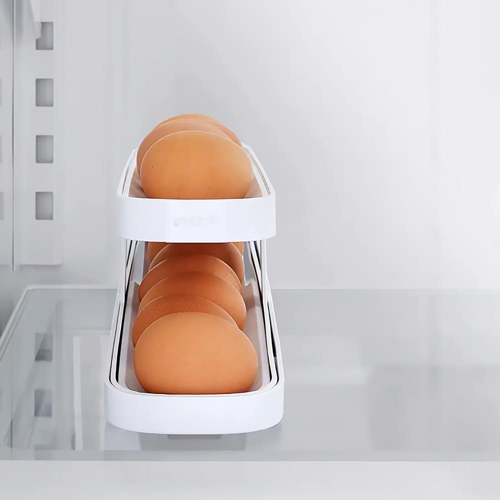 Ten pojemnik na jajka został zaprojektowany z myślą o efektywnym wykorzystaniu przestrzeni w lodówce, jednocześnie zapewniając łatwy dostęp do jajek bez ryzyka ich stłuczenia. Jego dwupoziomowa konstrukcja umożliwia przechowywanie co najmniej tuzina jajek.