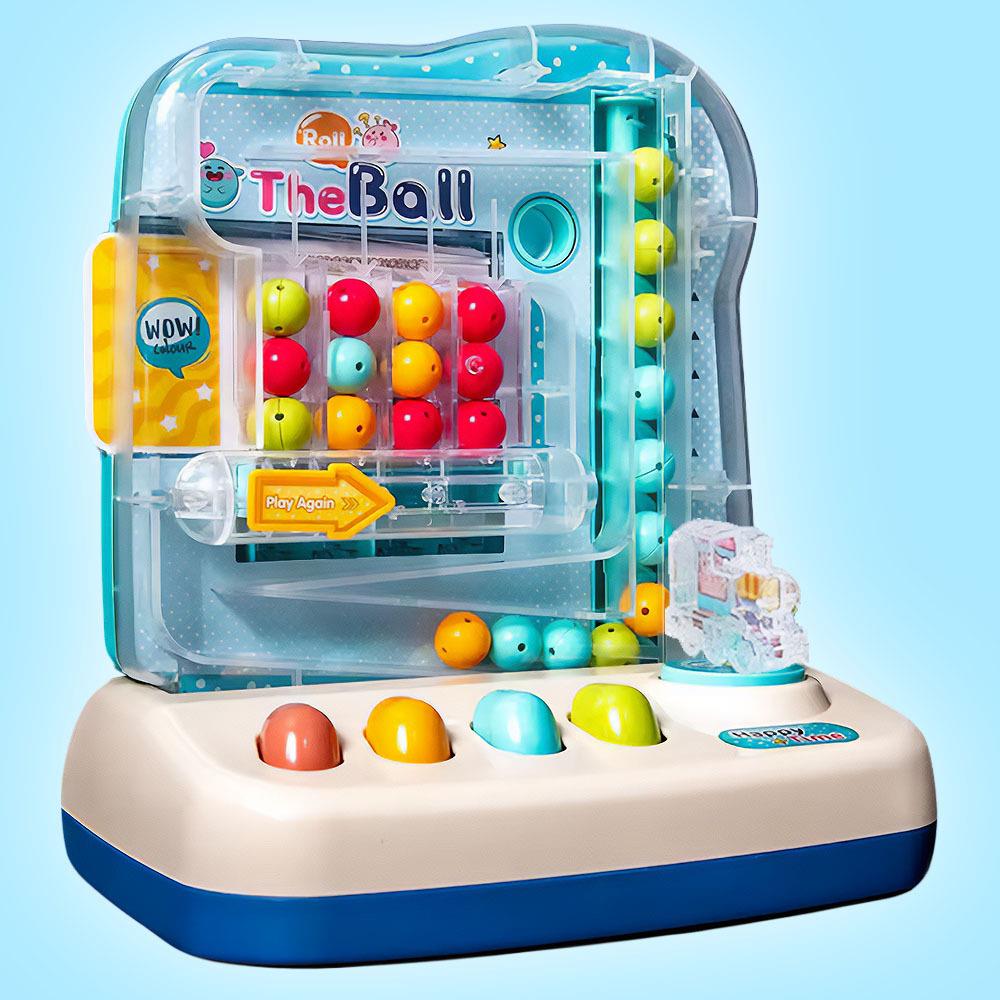 Kolorowe kulki należy prawidłowo dopasować według wzoru na włożonej karcie. Automat reaguje na włożone kulki oraz na interakcję z przyciskami, co tworzy dzieciom autentyczne wrażenie gry jak w prawdziwej arkadzie.