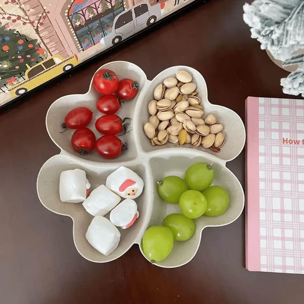 • 4 oddzielne przegrody na różne rodzaje przekąsek Na każdą okazję – uroczystości, spotkania ze znajomymi, przekąski w domu Odpowiednie na orzechy, chipsy, owoce, warzywa czy słodycze Pomysłowy design w kształcie serca