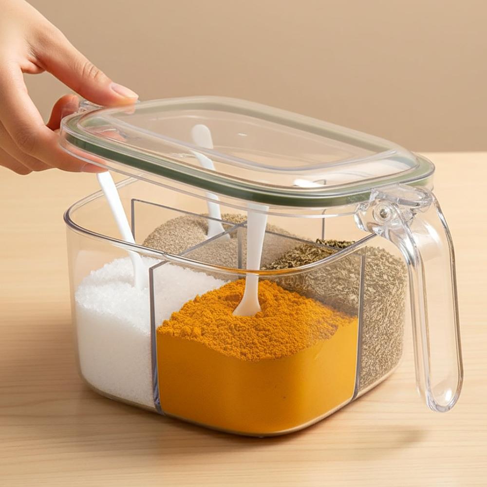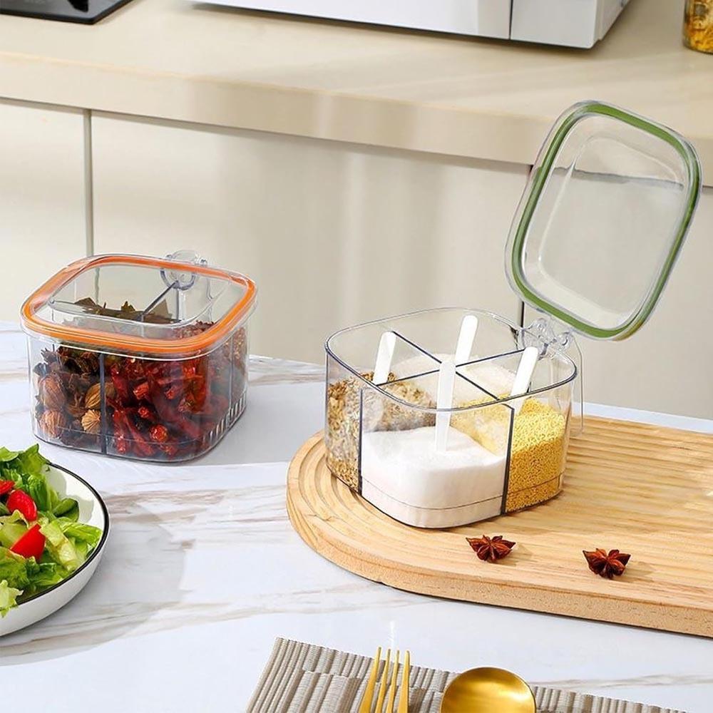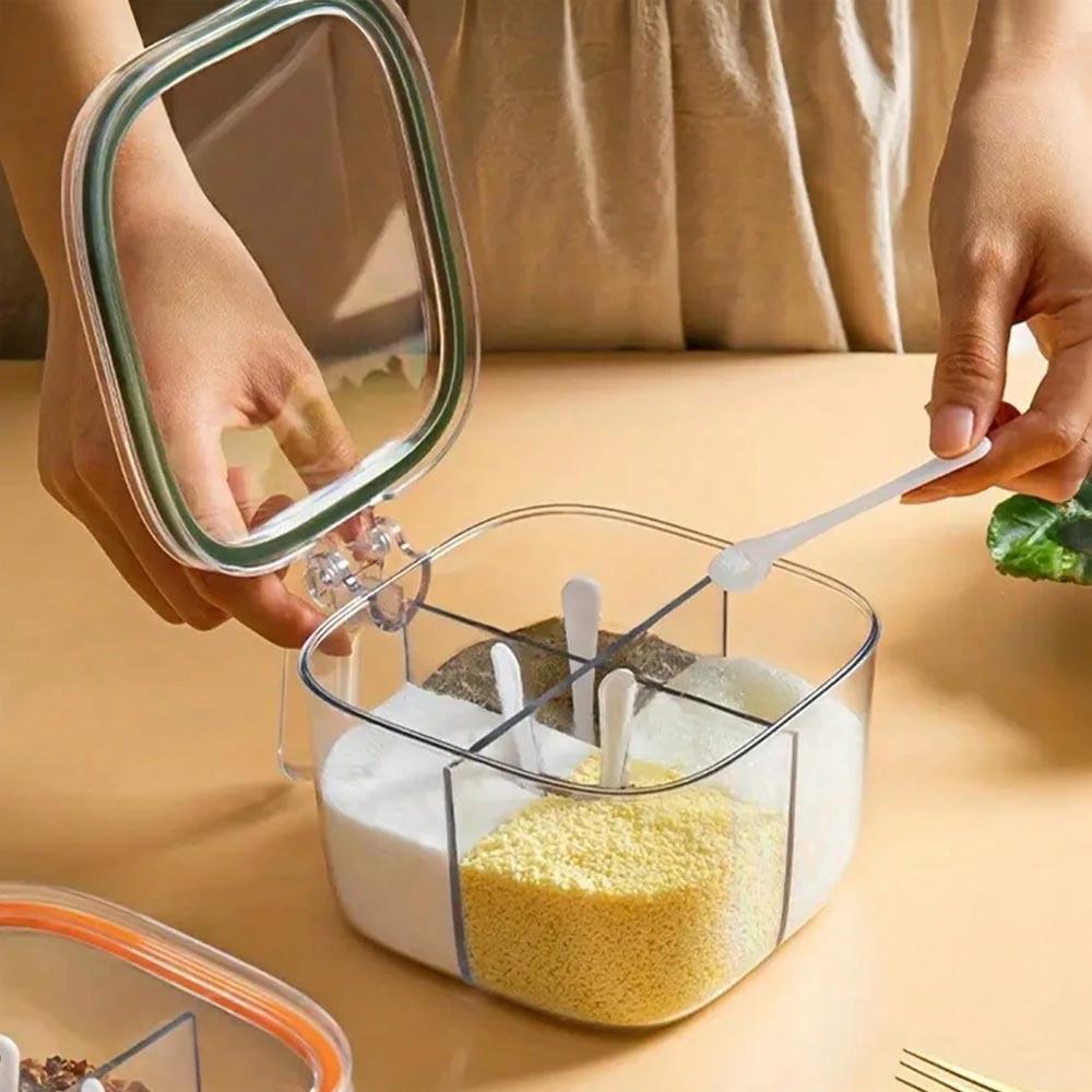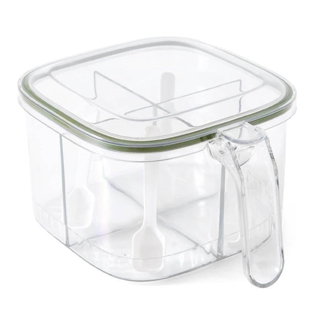 Dzieleny pojemnik z uchwytem – 4 przegródki, 4 łyżeczki