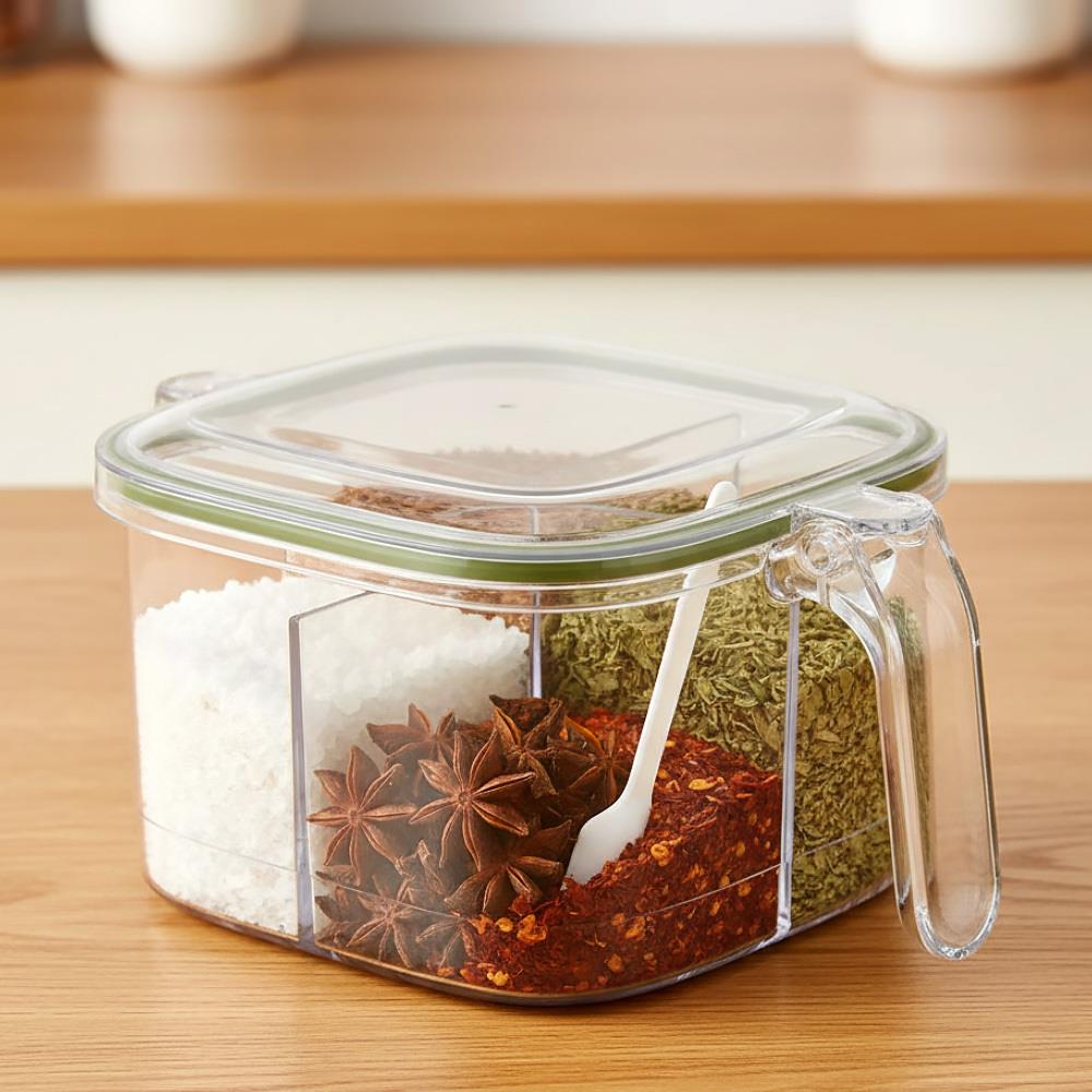 Każdy, kto lubi gotować, wie, że odpowiednio doprawione jedzenie potrafi natychmiast poprawić humor – jeden kęs i na chwilę zapominamy o troskach całego dnia. Tylko gdzie przechowywać wszystkie te przyprawy, żeby nie zwietrzały i jednocześnie były zawsze pod ręką? Rozwiązaniem jest ten praktyczny dzielony pojemnik z czterema przegródkami, w którym bezpiecznie przechowasz swoje ulubione przyprawy i będziesz wiedział, ile jeszcze ci ich zostało. Ponadto w każdej przegródce schowana jest praktyczna łyżeczka, więc nie będziesz musiał otwierać szuflad ani zasypywać przyprawą paznokci. Dzięki uchwytowi pojemnik można łatwo przenieść np. na stół lub na zewnątrz na piknik i mieć wszystko pod ręką bez ryzyka rozsypania. Zapomnij o stosach pojemników na przyprawy, które tylko zajmują miejsce i często przez nie sypiesz za dużo przypraw, niż potrzebujesz.