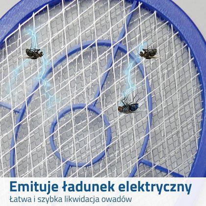 Produkt włącza się za pomocą przycisku zlokalizowanego na rączce i emituje ładunek elektryczny. Jak tylko dotkniesz lub po prostu lekko uderzysz owada, zostanie on porażony prądem. Nie martw się, że łapka mógłaby kogoś zranić, jest całkowicie bezpieczna, ponieważ emituje minimalny prąd. Jets on niebezpieczny tylko i wyłącznie dla owadów.