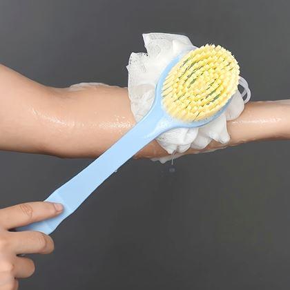 Szczotka do mycia pleców pomoże ci wygodnie umyć plecy. Z jednej strony znajduje się delikatna szczotka, a z drugiej strony myjąca gąbka. Dzięki szczotce do pleców podczas kąpieli zrelaksujesz się i zafundujesz sobie masaż pleców. Dzięki długiej rączce sięgniesz na całą długość pleców i mycie będzie przyjemne.