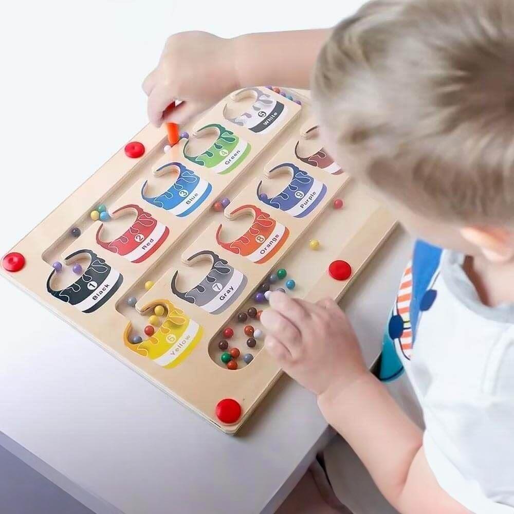 Magnetyczna gra do sortowania kolorów oferuje dzieciom doskonałe połączenie zabawy i nauki. Proste magnetyczne elementy umożliwiają łatwą manipulację, jednocześnie wspierając rozwój małej motoryki. Gra jest zaprojektowana tak, aby motywować dzieci do logicznego sortowania kolorów, co przyczynia się do rozwoju ich zdolności poznawczych. Dzięki tej grze dzieci mogą nie tylko rozpoznawać kolory, ale także uczyć się liczenia i poznawania cyfr.
