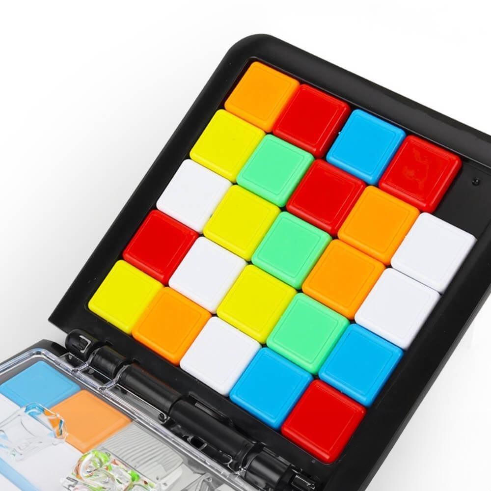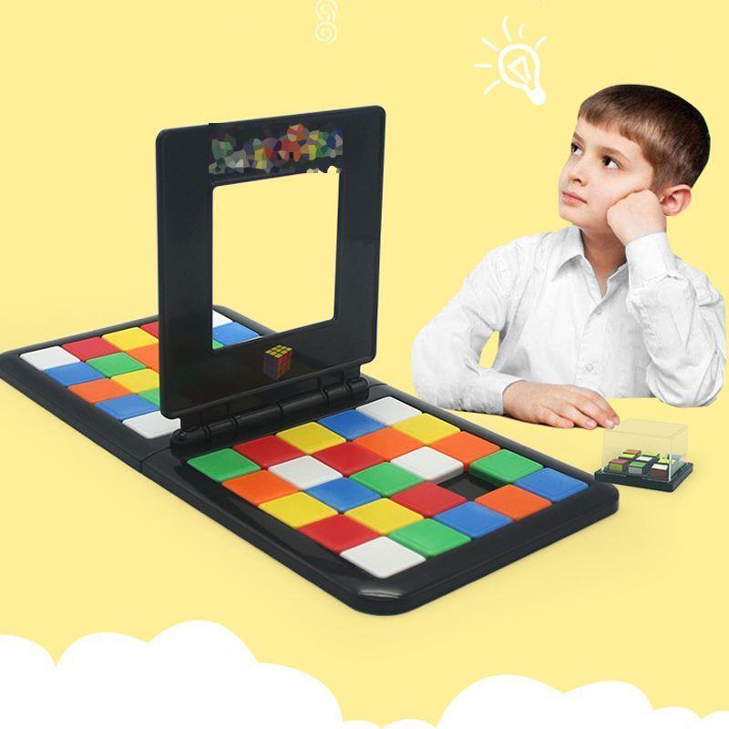 W jak najkrótszym czasie musisz ułożyć taką samą kombinację kolorów, jaka jest na wzorcowej kostce. Kombinacja kolorów musi być na środku pola o wymiarach 3x3 kryształki. Gdy tylko skończysz, przykryj pokrywą, a przeciwnik zobaczy, czy Twoja kombinacja zgadza się z wzorcową. Jeśli tak, wygrywasz grę Kostka Rubika dla 2. Wyzwań rodzinę do walki i porównajcie swoją pamięć.