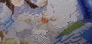 • Płótno jest podzielone na różne litery i cyfry, na które nakleja się poszczególne kamyczki