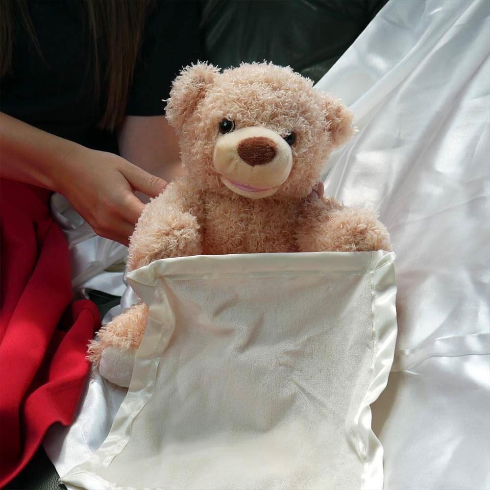 Uroczy pluszowy miś stanie się nierozłącznym towarzyszem wszystkich dzieci. Tak zabawnej zabawy w chowanego jeszcze nie przeżyliście. Aby aktywować misia, wystarczy nacisnąć łapkę z obrazkiem. Miś chowa się za kocykiem i cieszy się za każdym razem, gdy znowu cię widzi.