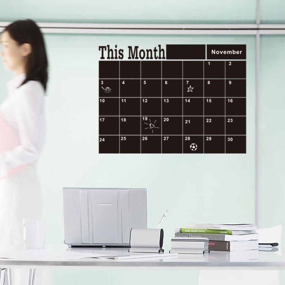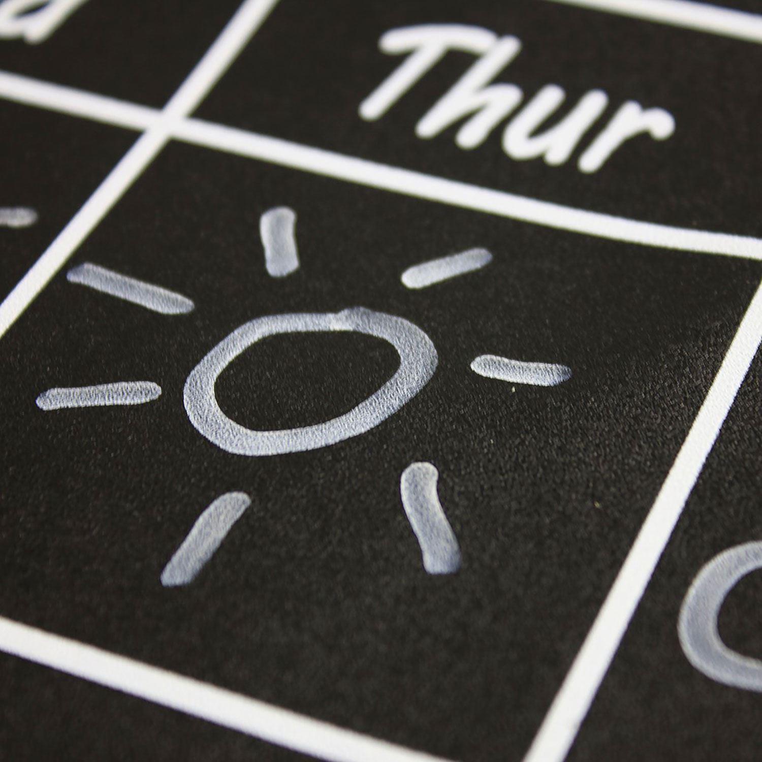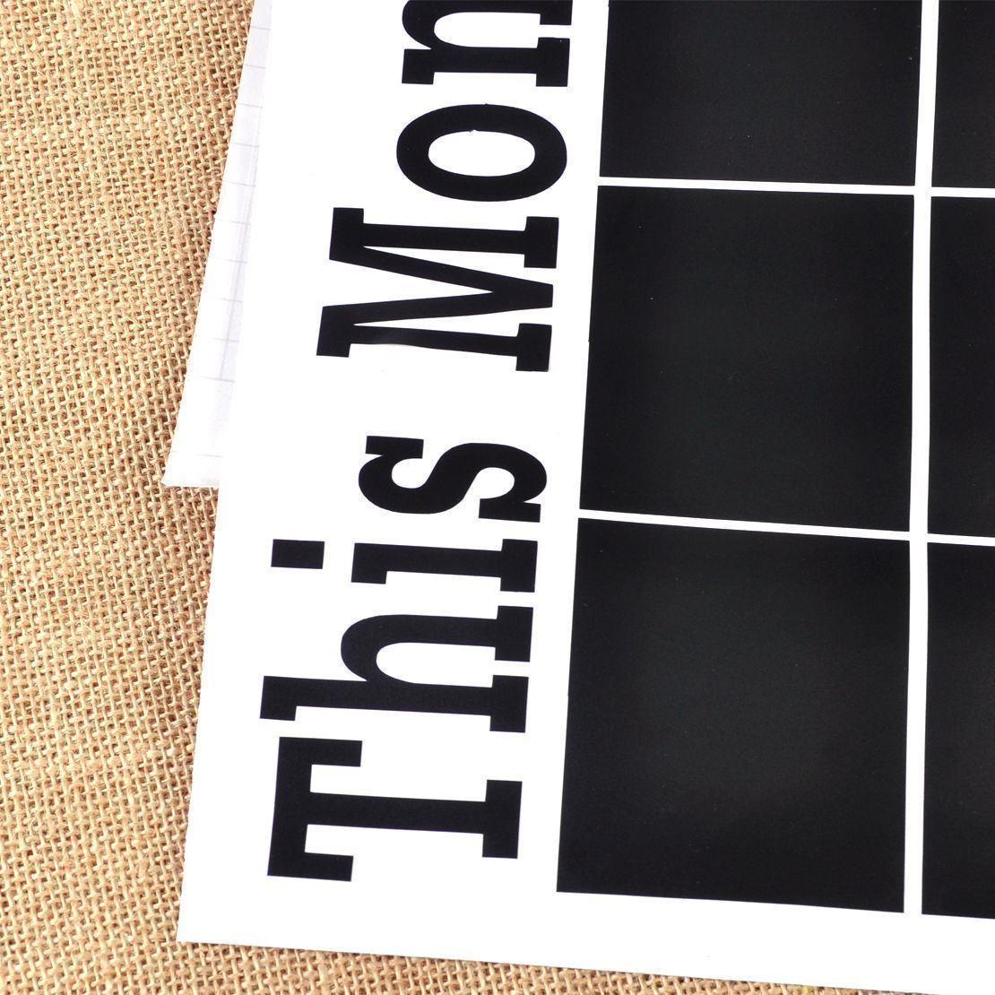 Kalendarz jest przystosowany do miesięcznej organizacji. Pisze się na nim kredami, które nie są dołączone do zestawu. Produkt nadaje się do wielokrotnego użytku. Po miesiącu wystarczy zetrzeć notatki i zapisać nowe na kolejny miesiąc. Odpowiedni na ścianę, szkło lub meble. Zalecamy naklejać na gładkie powierzchnie dla lepszej przyczepności. Jeżeli w danym miejscu przestanie Ci się podobać – po prostu go odklej. Na powierzchni nie zostaną żadne smugi ani plamy. Kalendarz zawiera 35 kwadratów symbolizujących dni miesiąca, 2 prostokąty i napis This month, co w tłumaczeniu oznacza "ten miesiąc". Kalendarz możesz ułożyć na ścianie według własnych pomysłów lub według przezroczystej folii, która zapewnia precyzyjne rozmieszczenie kwadratów! Kalendarz jest nie tylko praktyczny, ale też stanowi ładną dekorację wnętrza.