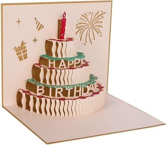 Piękne i oryginalne życzenia, które na pewno wzruszą i ucieszą każdego solenizanta. Po otwarciu kartki jubilat znajdzie magiczną 3D aplikację trzypiętrowego tortu ze świeczką, na którym nie brakuje angielskiego napisu „Happy Birthday”.