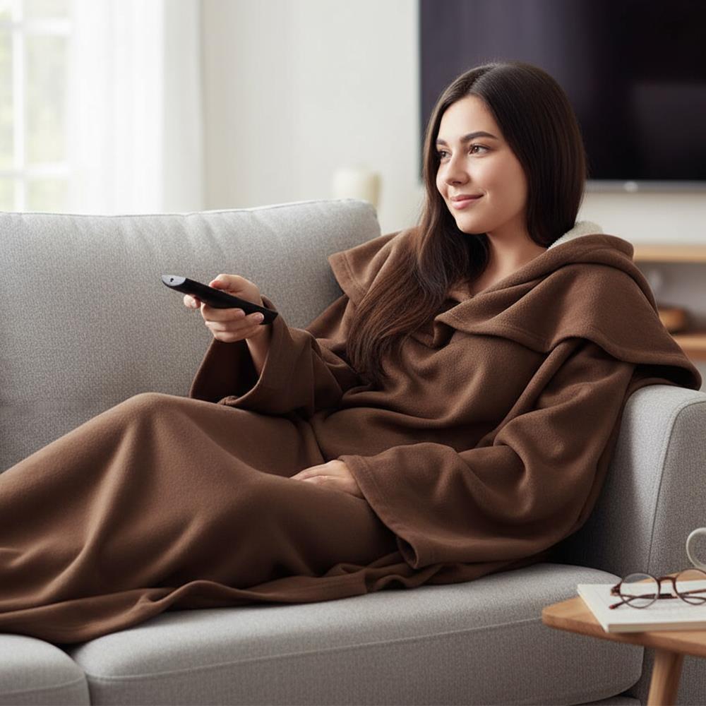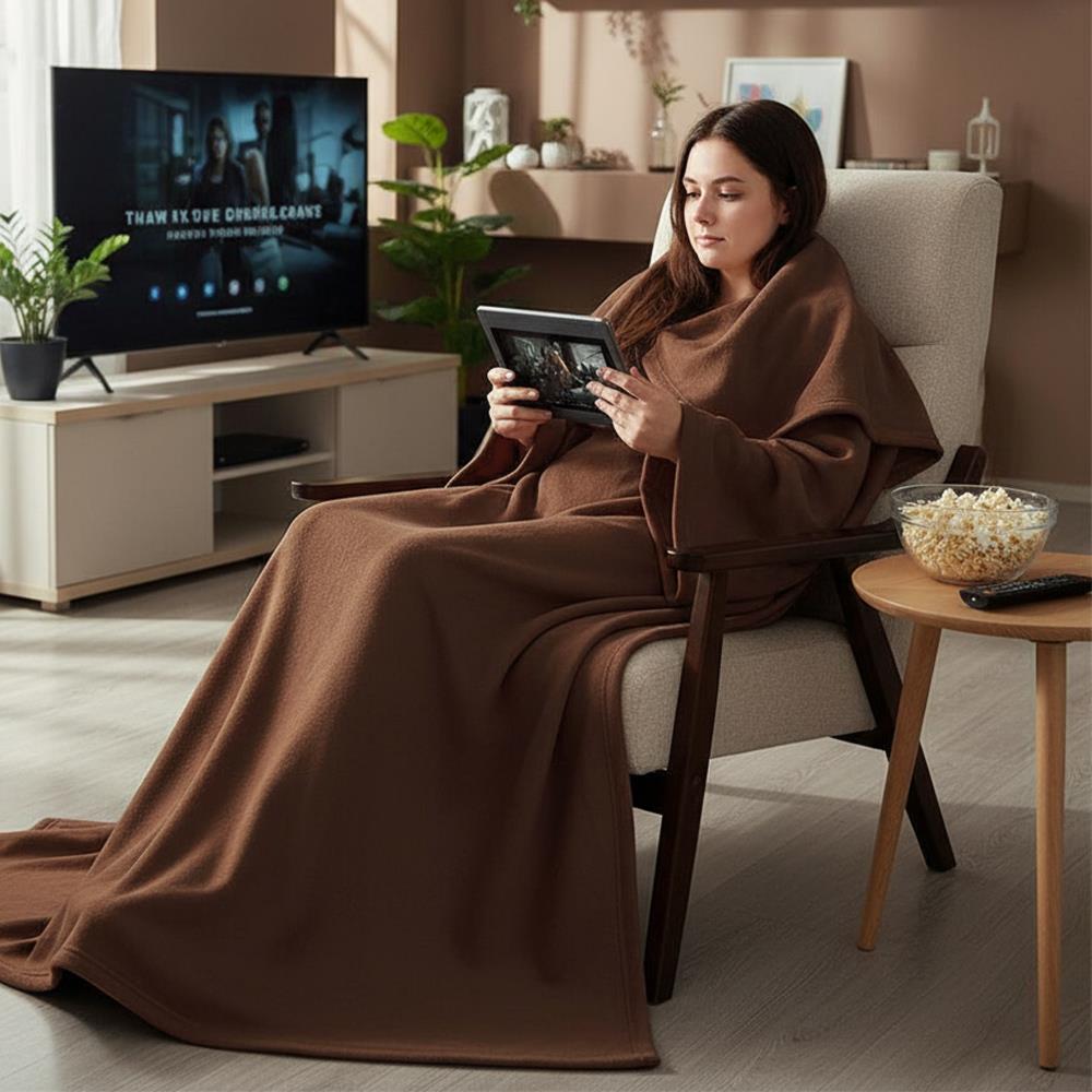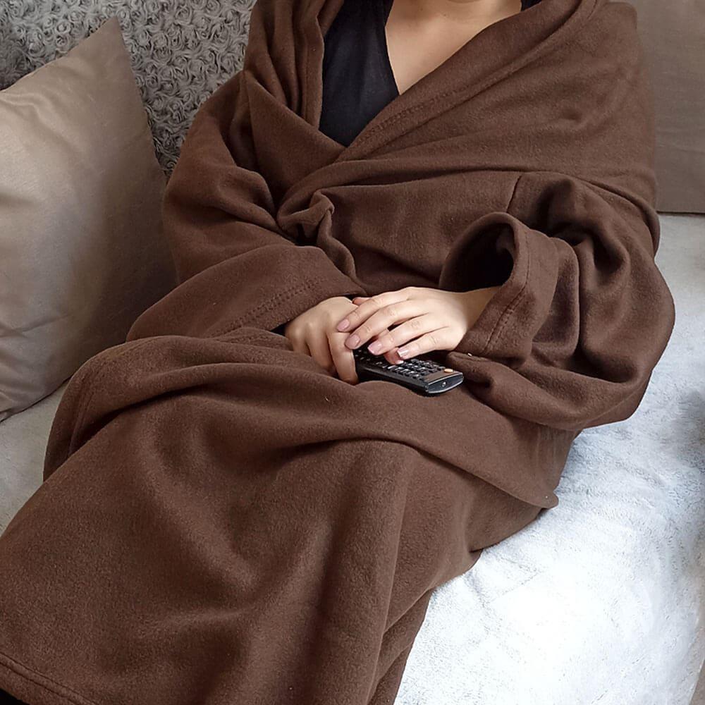 Koc telewizyjny! Prezent dla całej rodziny! O wiele lepszy niż zwykły koc! A to wszystko dzięki rękawom, w które został wyposażony. Absolutnie każdy go pokocha. Koc wykonany jest z przyjemnego materiału, który doskonale grzeje. Z tym kocem czeka Cię tylko wygoda, komfort i perfekcyjny relaks. W tym kocu będziesz poruszać się o wiele swobodniej. Idealnie sprawdzi się np. podczas przewracania stron książki, podjadania przekąsek, pracy z laptopem na kolanach, grania na playstation czy przełączania kanałów w telewizorze.