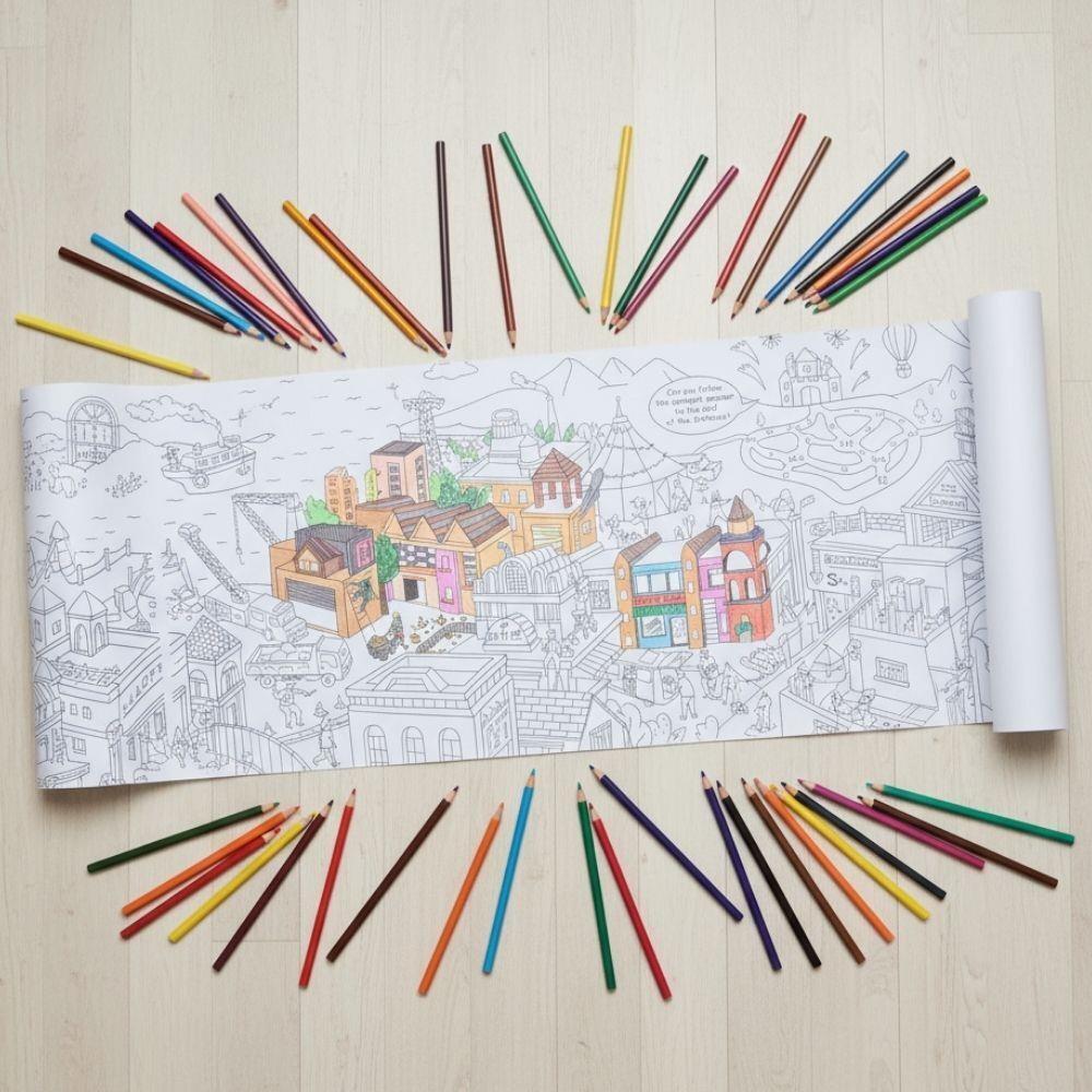 Rozwiń dziecięcą wyobraźnię na całych 10 metrach! Te kolorowanki w rolce to świetna zabawa dla małych i większych dzieci. Dzięki długiej powierzchni mogą tworzyć samodzielnie lub w grupie. Rolka łatwo się rozwija na podłodze, stole lub można ją przykleić do ściany.