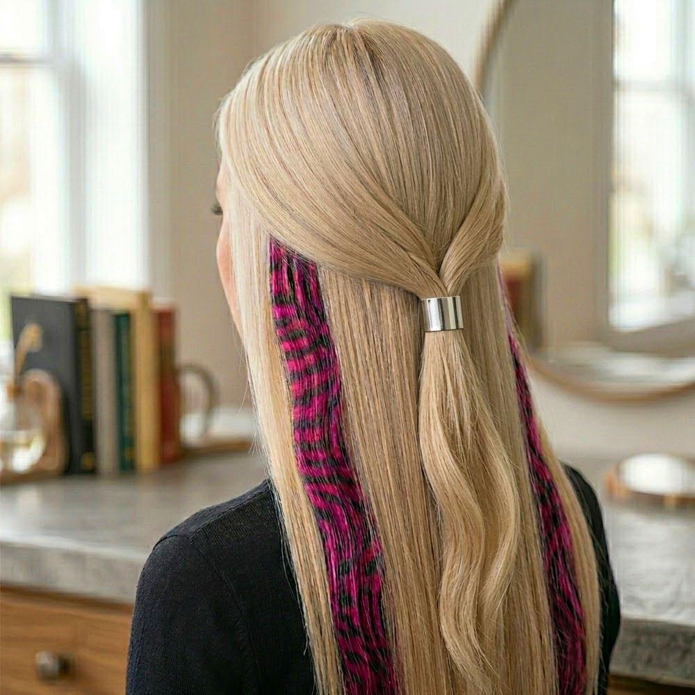 Akcesorium do włosów, które ożywi każdą fryzurę. Nasz modny, kolorowy dopinek do włosów został stworzony dla młodych kobiet i nastolatek, które chcą się wyróżnić i wyrazić swoją osobowość poprzez fryzurę. Jego wielką zaletą jest to, że pozwala szybko i łatwo zmienić swój wygląd. Bez konieczności farbowania lub obcinania włosów możesz dodać swojej fryzurze piękne, kolorowe pasemka. Dopinek został zaprojektowany tak, aby można go było łatwo dopasować do własnych potrzeb. Można go przyciąć na krótszą lub węższą wersję. Dzięki temu uzyskasz wymarzoną fryzurę, która idealnie do Ciebie pasuje.