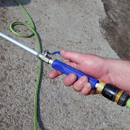 Po podłączeniu nasadki do Twojego ogrodowego węża uzyskasz wydajną myjkę ciśnieniową. Myjka doskonale usuwa wszelkie zanieczyszczenia i brud, świetnie dociera także do szczelin, w które zwykły wąż nie byłby w stanie dotrzeć.