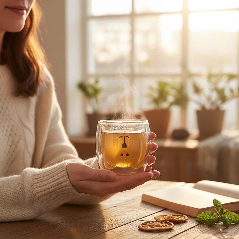 Ten uroczy kubek z misiem do picia z podwójnymi ściankami zadowoli każdego miłośnika słodkich nowinek. Bez względu na to, jakie napoje preferujesz rano, z tym kubkiem będą smakować o wiele lepiej. Kubek nadaje się zarówno na zimne, jak i gorące napoje. Napełnij go np. kawą i obserwuj, jak miś pięknie się wyróżnia.