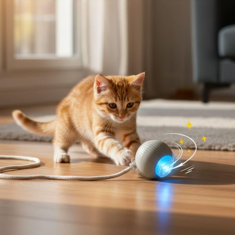 Piłeczka jest ładowalna, więc nie trzeba już wymieniać baterii. W zestawie znajduje się kabel umożliwiający wygodne ładowanie. Praktyczny sznurek pozwala na łatwe chwytanie i daje jeszcze więcej możliwości zabawy – możesz piłeczkę rzucać, przeciągać lub pozwolić pupilowi bawić się samodzielnie. To doskonały sposób na wsparcie aktywności, ograniczenie nudy i zapewnienie Twojemu zwierzakowi codziennej porcji aktywnej rozrywki.