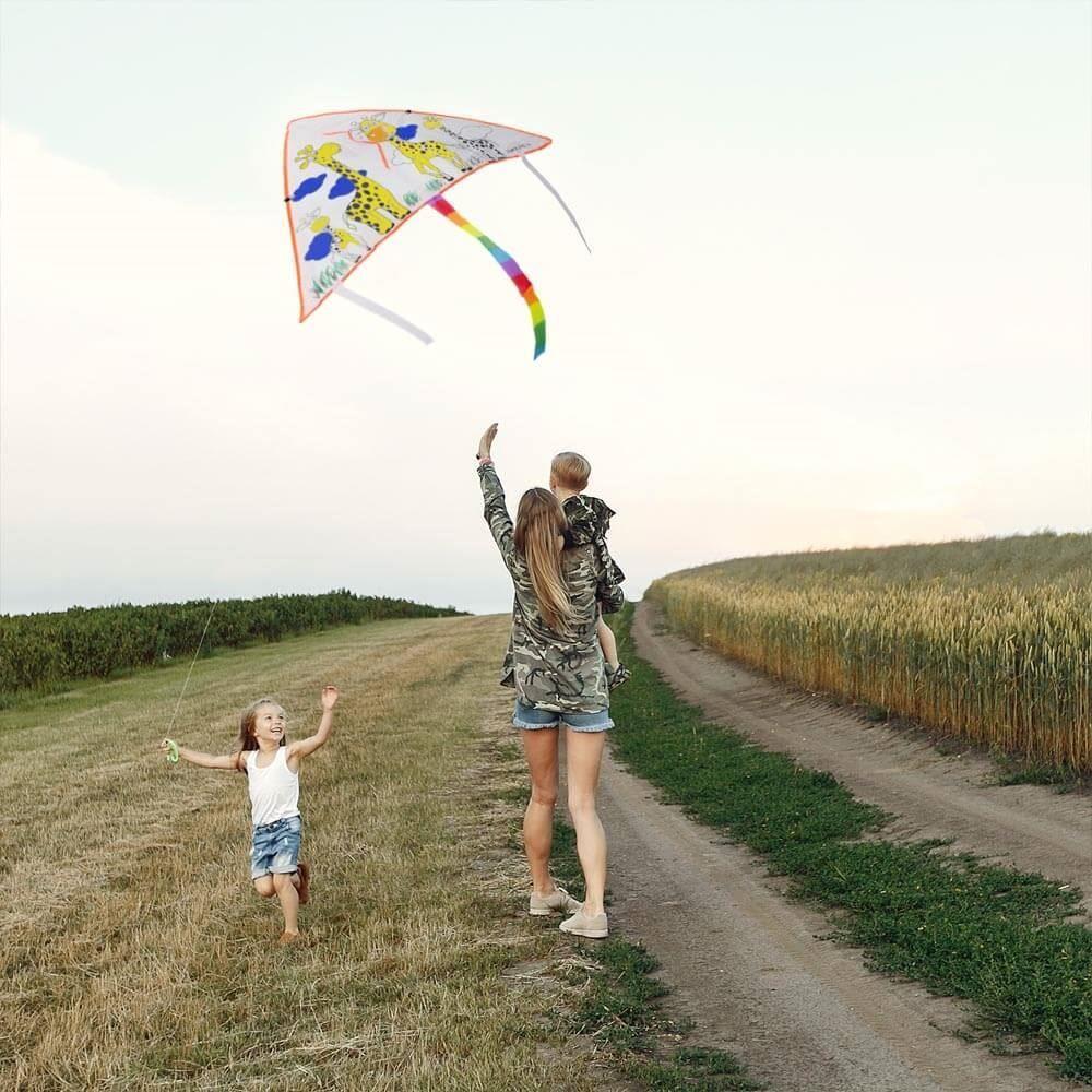 Ten piękny latający latawiec zadowoli małych i dużych dzięki dwóm aktywnościom. Można go najpierw pomalować – w zestawie znajdują się farby temperowe, które można właśnie do tego użyć. A kiedy pokolorujesz go według własnej wyobraźni, możesz wyjść na zewnątrz i puszczać latawca. Dzięki swojemu trójkątnemu kształtowi pięknie lata i utrzymuje się w powietrzu.