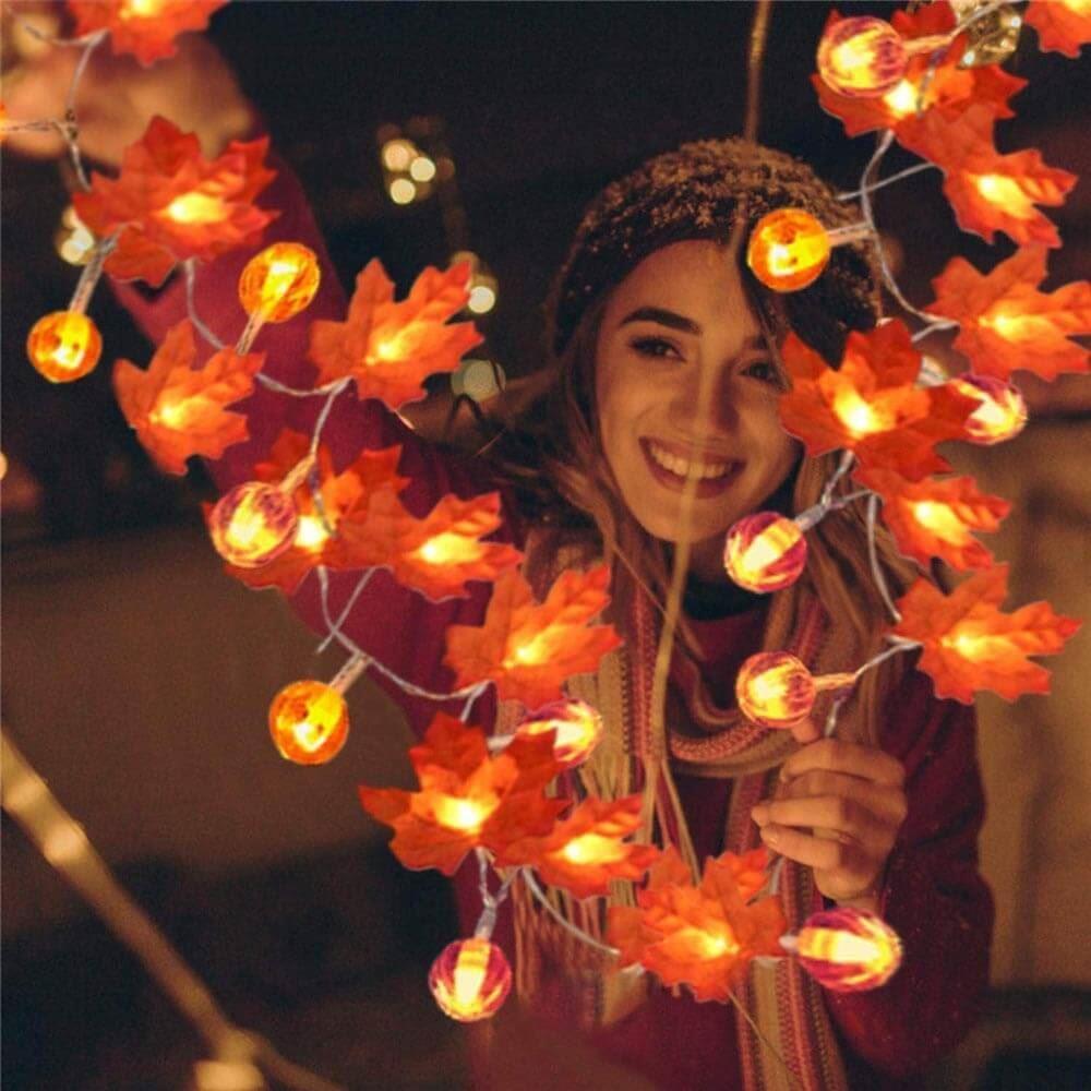 LED świetlny łańcuch z motywem jesiennych liści to uroczy element dekoracyjny, który wprowadza do wnętrza magię i atmosferę jesiennej pory roku.