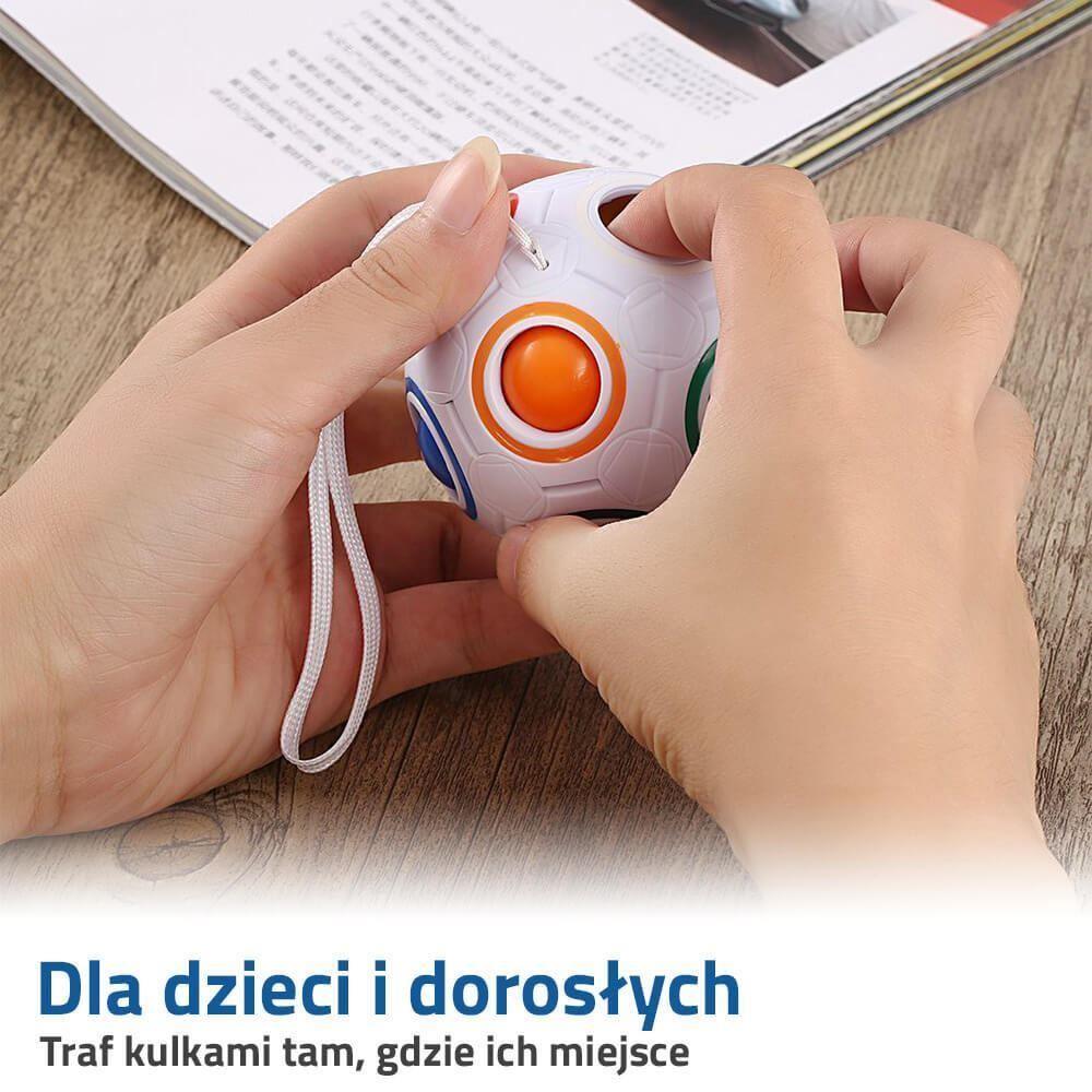Zabawka kieszonkowa dla każdego majsterkowicza lub dla kogoś, kto nie potrafi usiedzieć chwili w spokoju. Kolorowa łamigłówka to plastikowa piłka z kolorowymi otworami, do których pasują kolorowe piłeczki oraz jeden wolny otwór bez koloru. Celem tej zabawki jest umieszczenie kolorowych piłek w otworach o tym samym kolorze. Piłka jest zabawną zabawką, która potrafi przepędzić nudę na długi czas. Dzięki swoim rozmiarom można ją mieć zawsze przy sobie lub położyć na biurku w biurze.