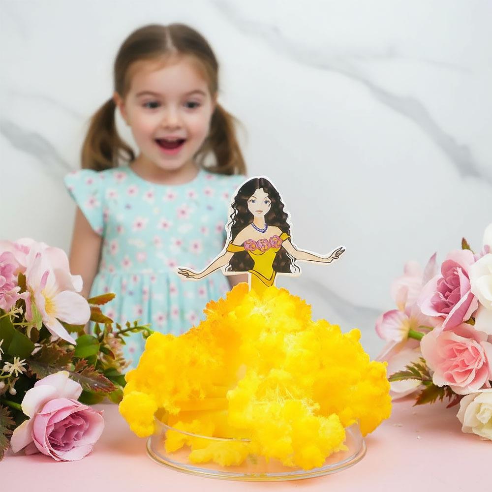 Magiczna kwitnąca lalka to spełnienie marzeń każdej małej księżniczki, która wierzy w bajki i magię. Na jej oczach rozwija się kolorowy cud. Wystarczy kilka godzin, a papierowa lalka zaczyna przyodziewać się w lśniące, kolorowe sukienki. Lalka może również pobudzać kreatywność i zainteresowanie nauką, gdy dzieci obserwują fascynujący proces wzrostu sukienek.