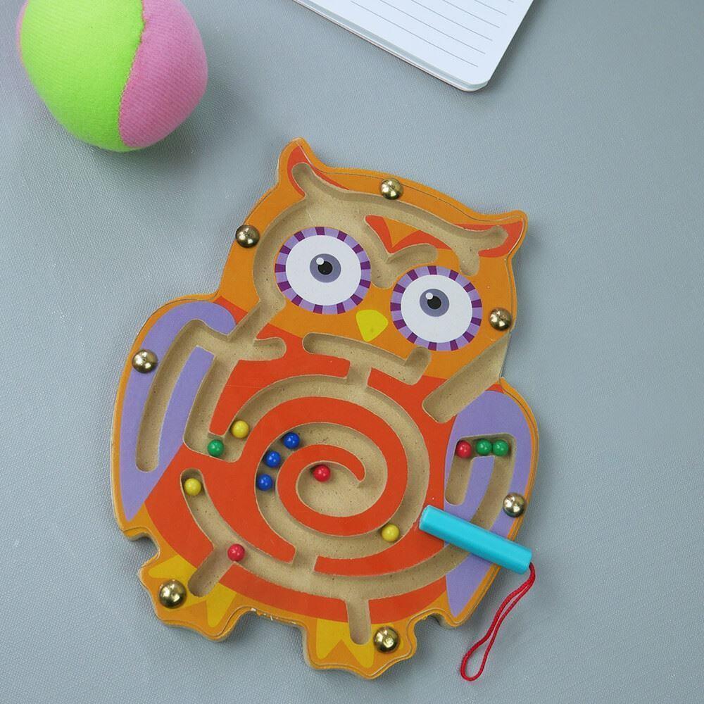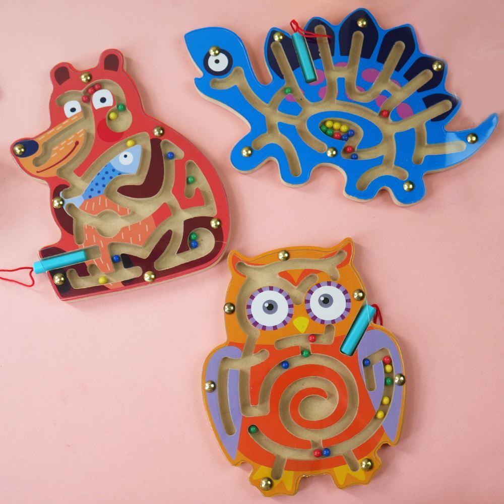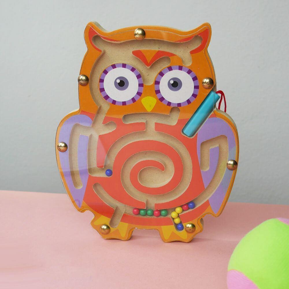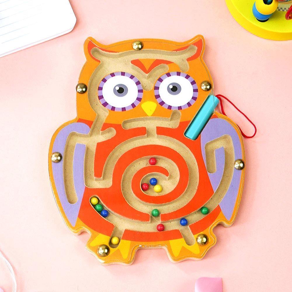 Magneticki labirynt to doskonała układanka dla dzieci. Wykonana jest w kolorowym motywie radosnego zwierzątka, co przyciąga uwagę dzieci od pierwszego wejrzenia! Ale dopiero podczas gry zaczyna się prawdziwa zabawa! Dzieci starają się przesuwać kuleczki w labiryncie za pomocą magnetycznego długopisu. Podczas zabawy rozwijają swoją motorykę i logiczne myślenie. Reguły gry można sobie wybrać samemu. Można na przykład sortować kuleczki według kolorów lub przemieszczać je na czas. Poprzez różne ruchy z kuleczkami uczą się rozwiązywać problemy i skupiać się. I to wszystko bez jakiegokolwiek długiego zmuszania do zabawy! Pomóż dzieciom pobudzić swoje mózgowe nitki i wyćwiczyć zręczne rączki! Dzieci na pewno docenią także naturalny materiał drewniany, który nadaje labiryntowi naturalny charakter.