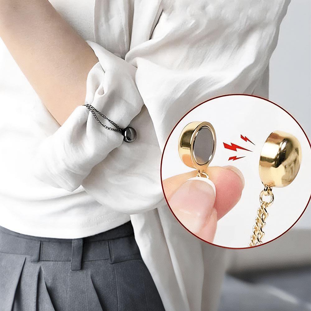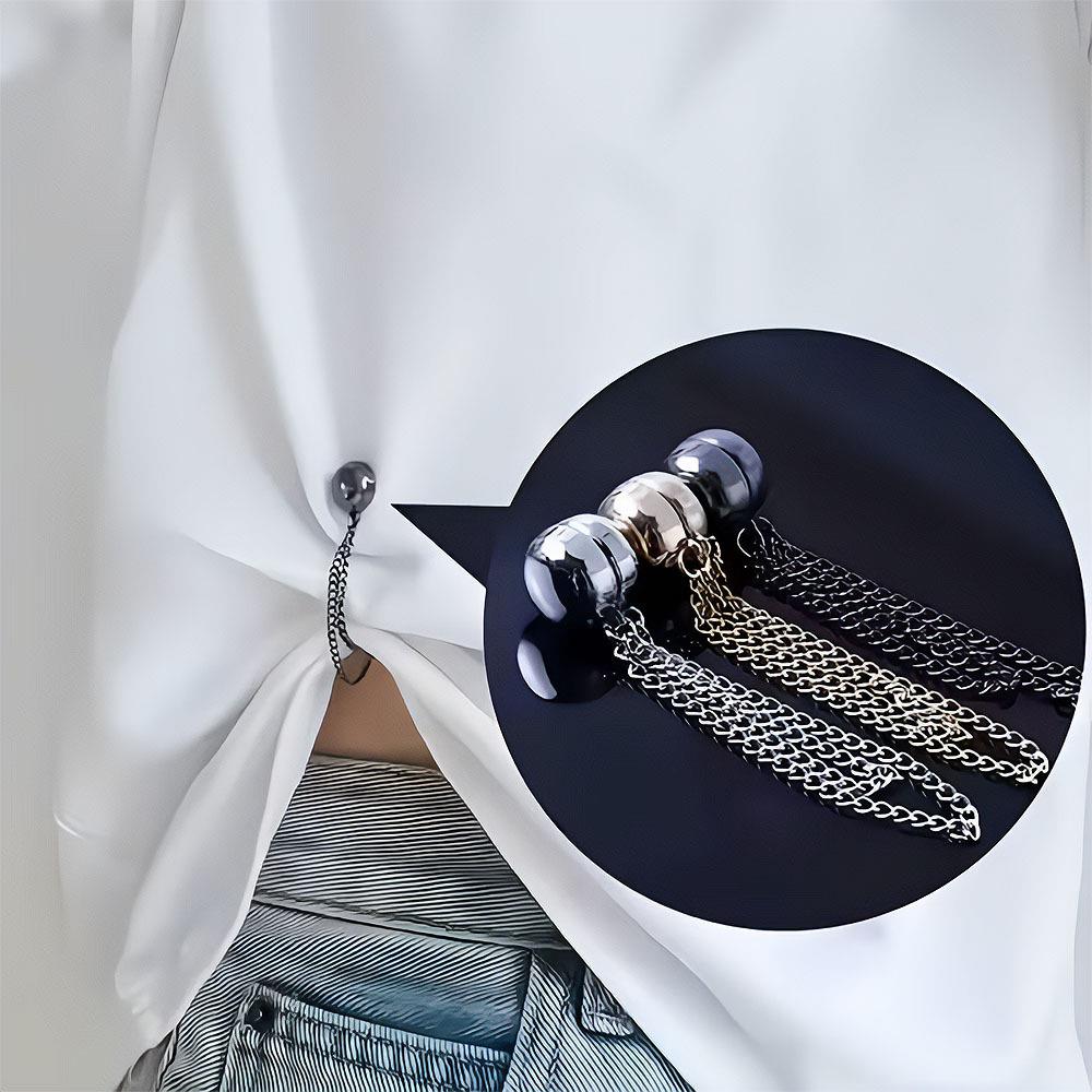 Magnetyczna klamra do skracania nogawek z łańcuszkiem to sprytne rozwiązanie dla każdego, komu spodnie lub rękawy bywają czasem trochę za długie. Bez szycia, bez klejenia i bez stresu – wystarczy złożyć materiał do pożądanej długości i przypiąć magnetyczne końcówki. Gotowe w kilka sekund.