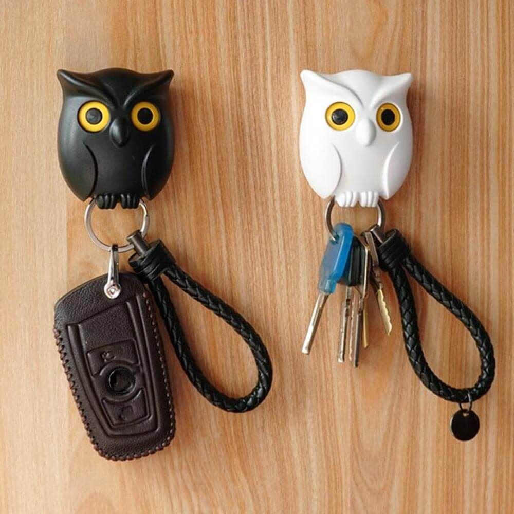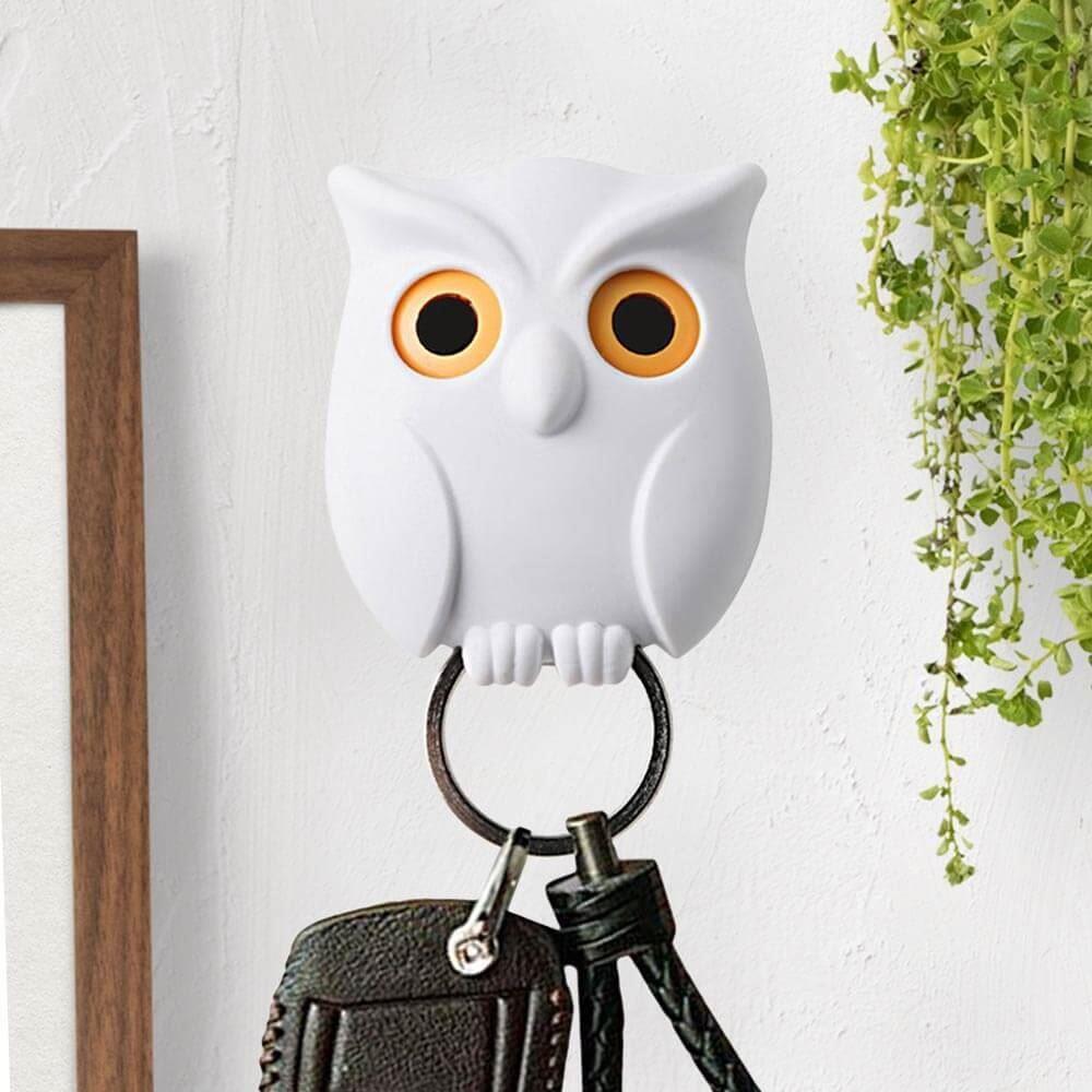 Magnetyczny uchwyt na klucze to praktyczny haczyk, który docenią zwolennicy wygody. Nie musisz się wysilać – po wejściu do domu wystarczy przyłożyć klucze do sówki, a ona chwyci je za pomocą swoich pazurków. Magnetyczna sowa wtedy otwiera swoje urocze oczka. Sowi strażnik to drobny prezent, który wywoła uśmiech na twarzy. Twoje klucze będą przy nim bezpieczne!
