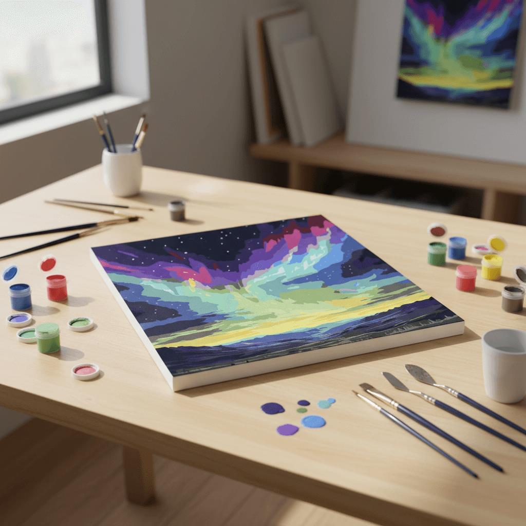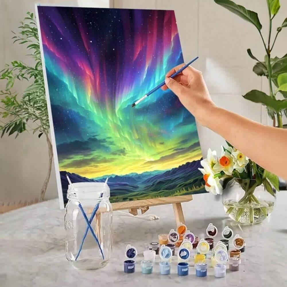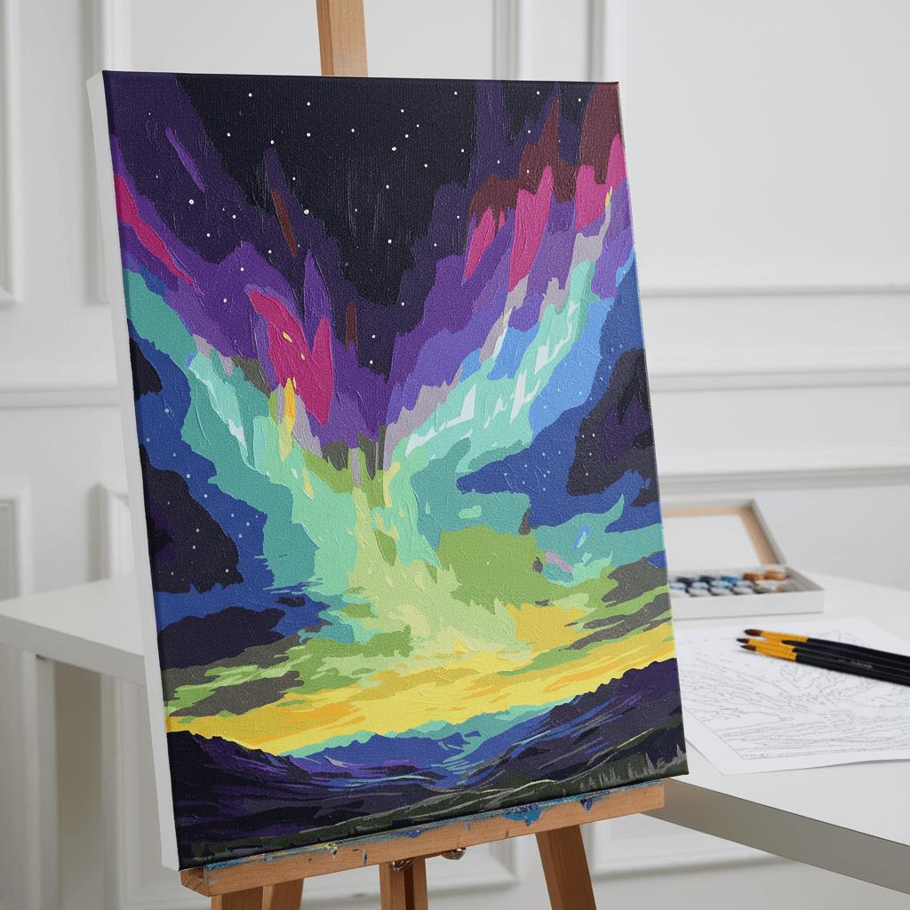Malowanie po numerach, naciągnięte płótno na ramę - zorza polarna
